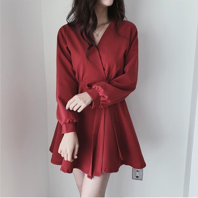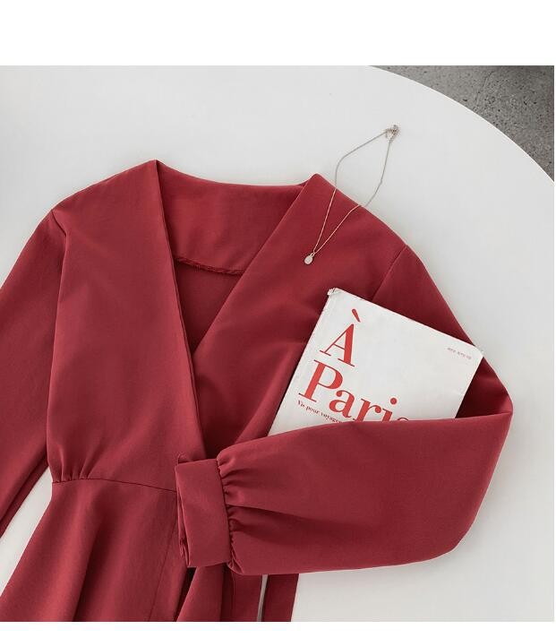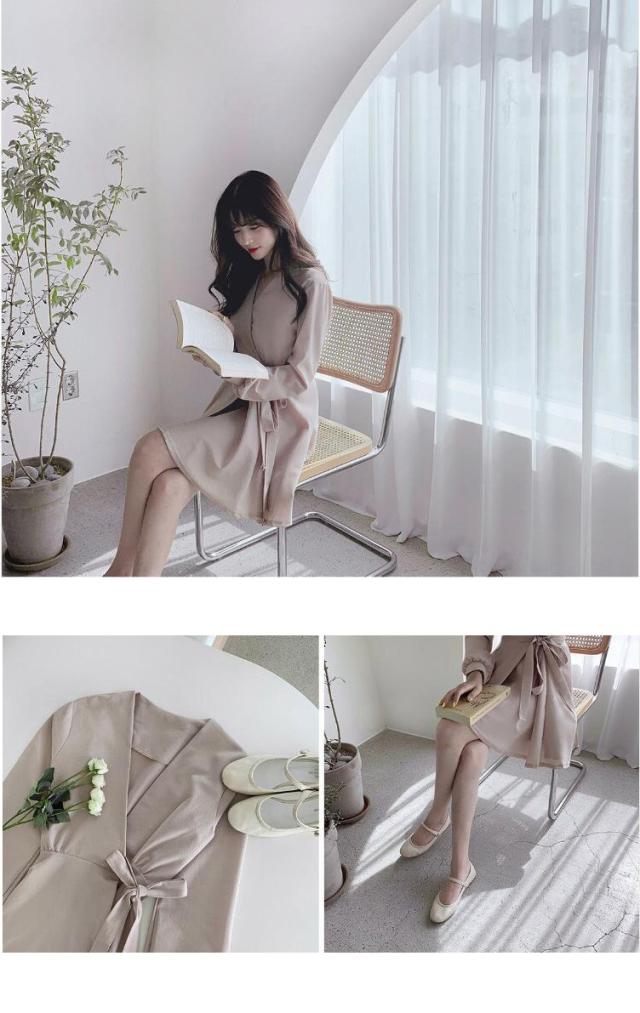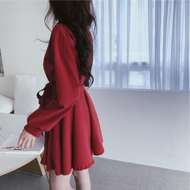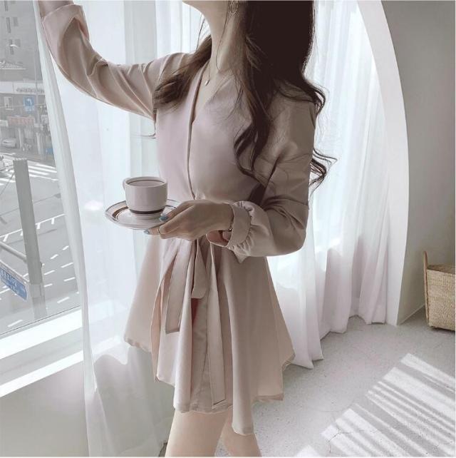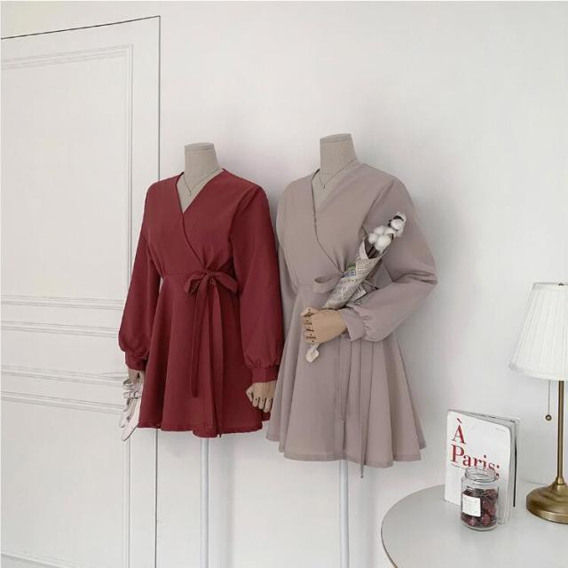 ワンピース レディース 40代 膝丈ワンピース 秋 きれいめ 長袖 ワンピース vネック リボン 上品 Aラインワンピース 韓国風 着痩せ 通勤 結婚式ドレス 30代