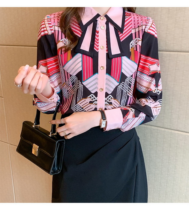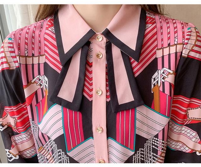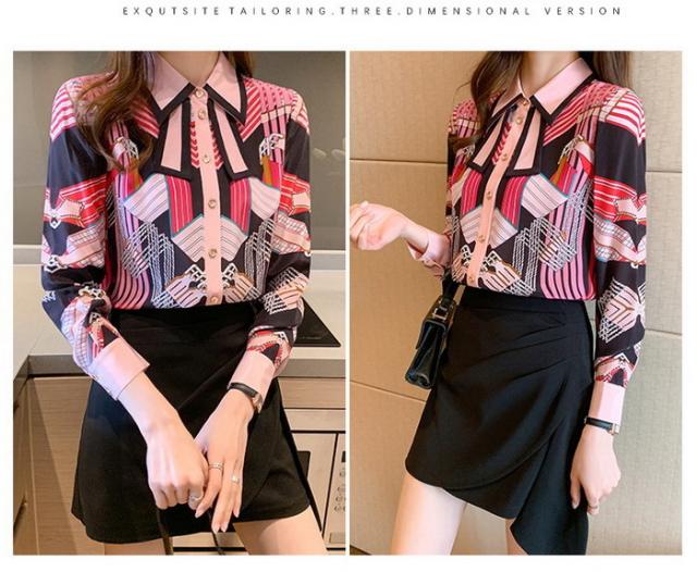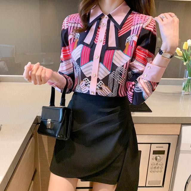 ブラウス レディース 40代 春秋新作 オシャレブラウス シャツ シフォンプリントシャツ 長袖トップス カジュアル おしゃれ大人 通勤OL ゆったりシャツ30代50代