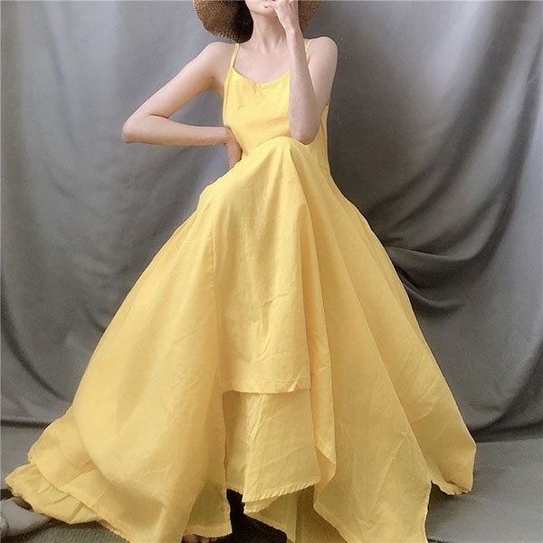 超ロング リゾートワンピ キャミワンピース ノースリーブ Aライン Vネック ワンピース ハワイアン 海辺デート ホワイト ブラック 白 黒