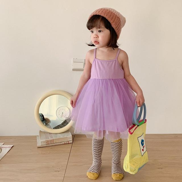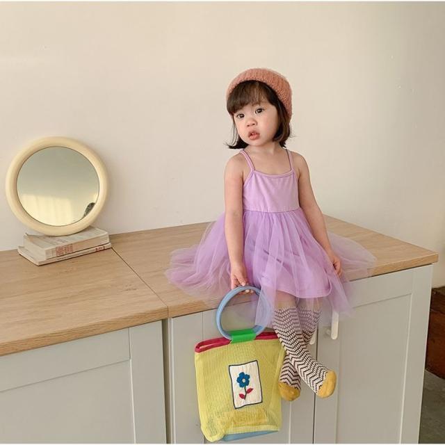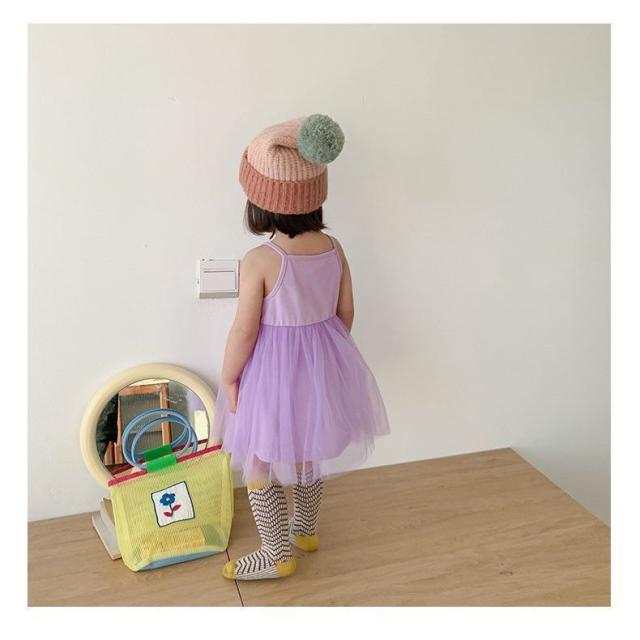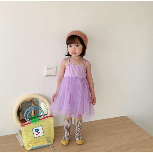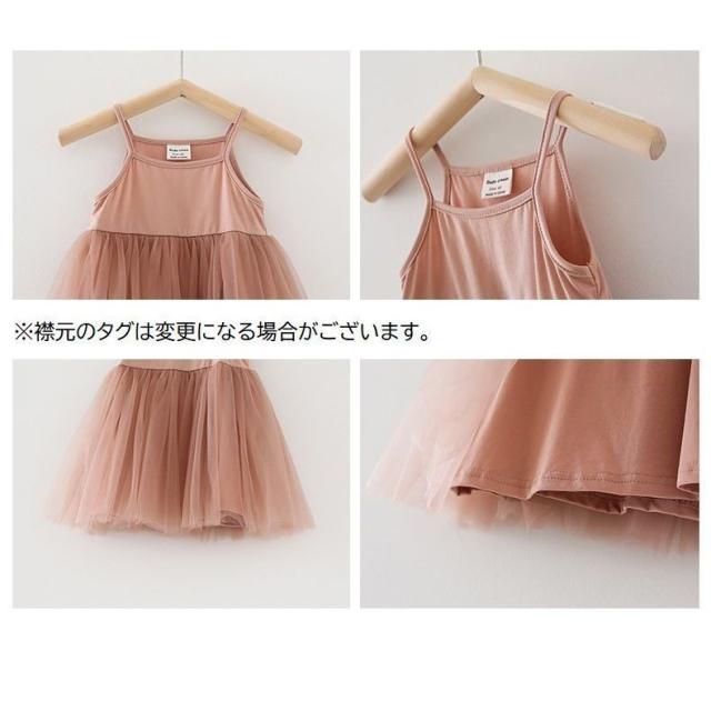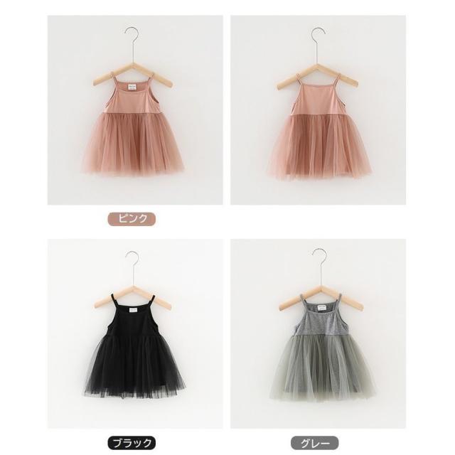 チュールワンピース 子供服 キッズ ベビー 女の子 膝丈 無地 キャミソールワンピース ノースリーブ ふんわり 可愛い おしゃれ ガーリー シンプル