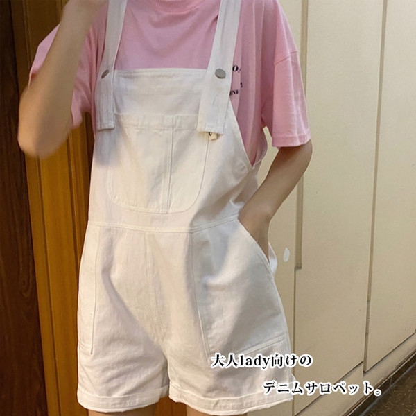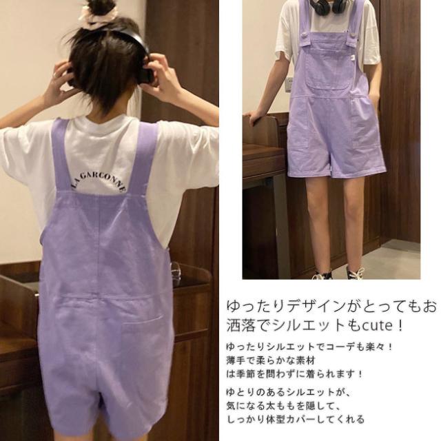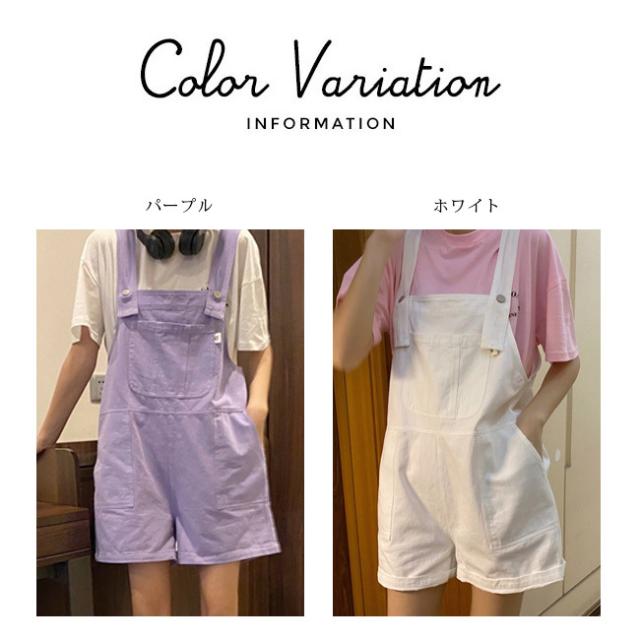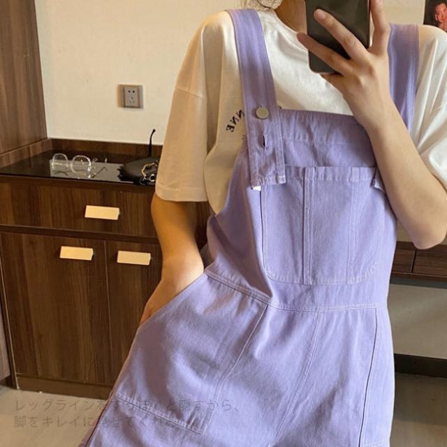 サロペット レディース ゆったり オーバーオール カジュアル 無地 ポケット付き パープル デニムパンツ オールインワン シンプル ベージュ ショート丈