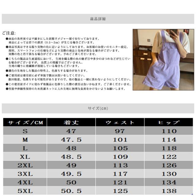 | サイズについての説明 | 春から秋までのコーデに必ず取り入れることをお勧めます。 オールインワンで楽なコーデは毎日の着回しが楽ですね。 見た目はしっかり上品で、着心地は軽やかなサロペットです。 【注意】 *画面上と実物では多少色具合が異なって見える場合もございます。 *商品には多少の個体差がございます。予めご了承くださいませ。 *サイズ表記は目安です。誤差はご了承ください。 *商品は縫製上の細かいほつれ、インク飛び、織りむら、汚れ、素材特有の臭いや接着剤等の臭いが残っている場合がございますので、気になるお客様はご購入をお控え下さい。 |