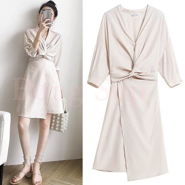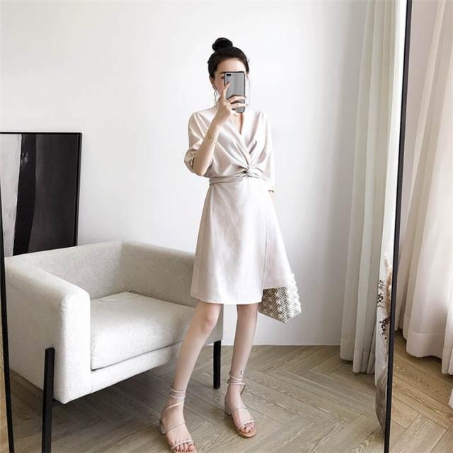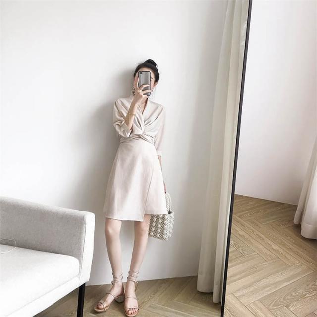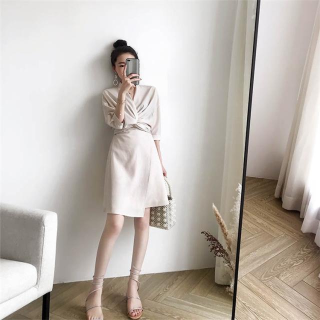 ワンピース レディース Vネックワンピ 膝丈ワンピース きれいめ 上品 ハイウエスト 20代 30代 40代 着痩せ OL 秋ファッション