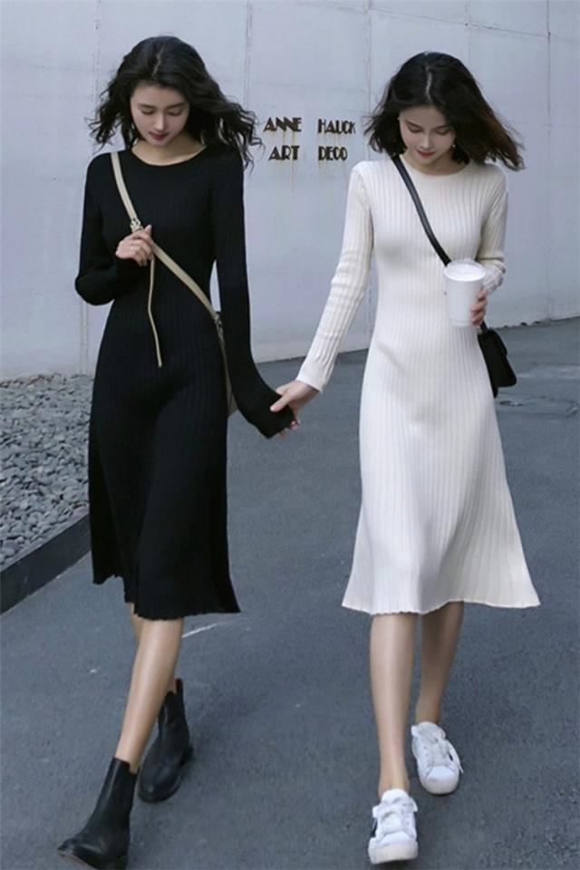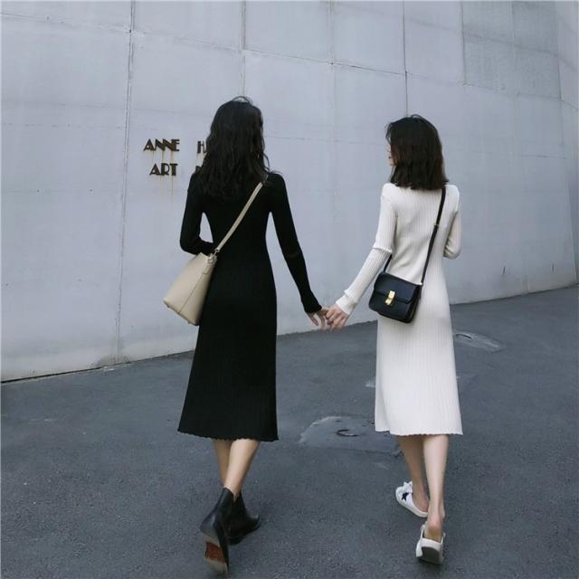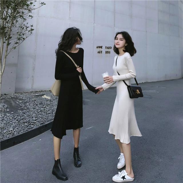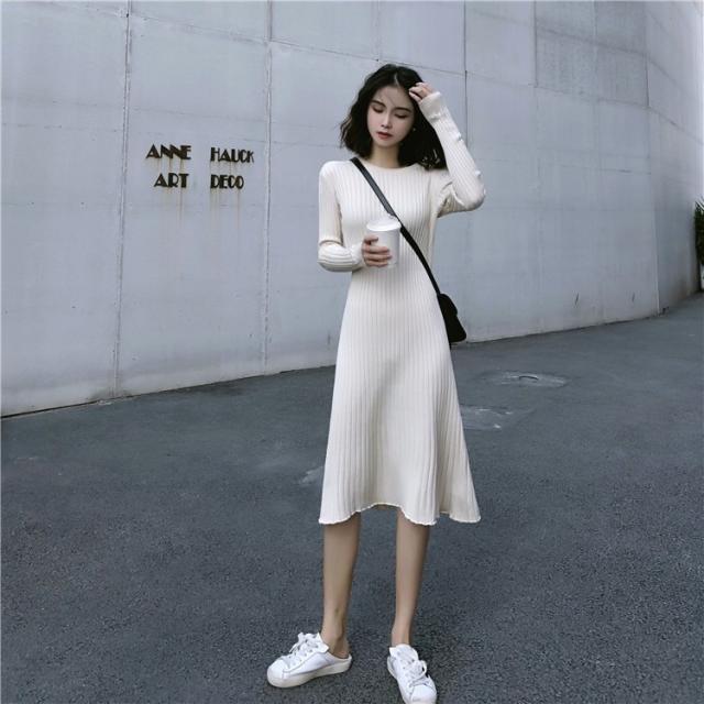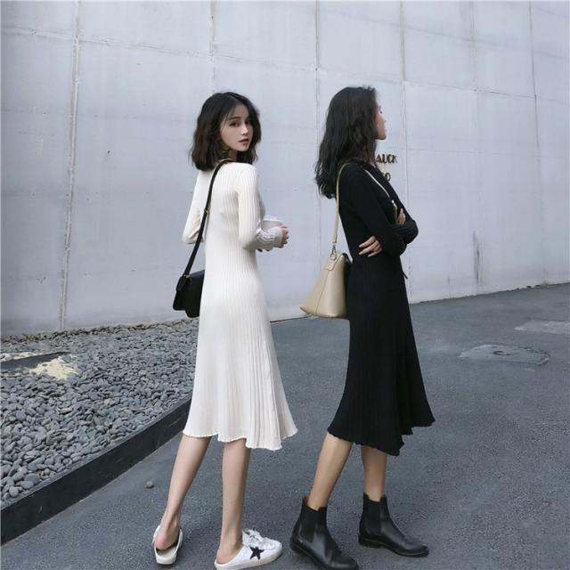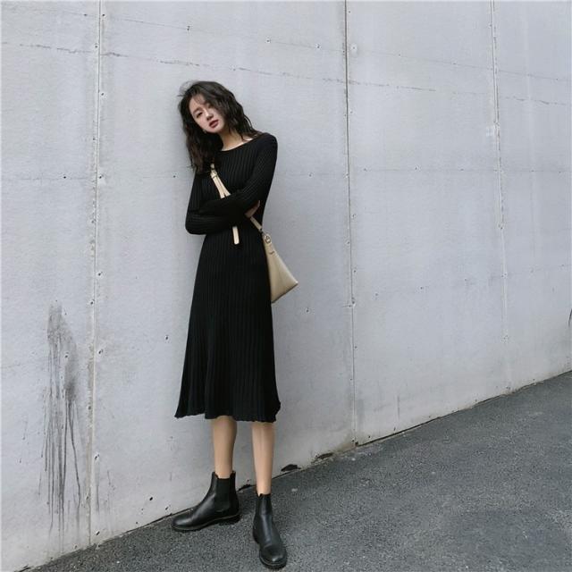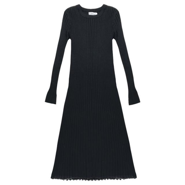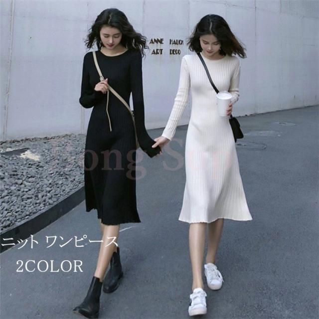 ニット ワンピース レディース オシャレ ニットワンピース 長袖 ニット 膝丈 着痩せ コーデ オシャレ Aライン 黒ワンピ 春秋 代 30代 40代