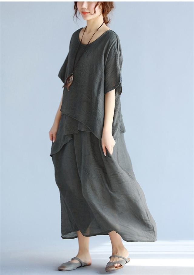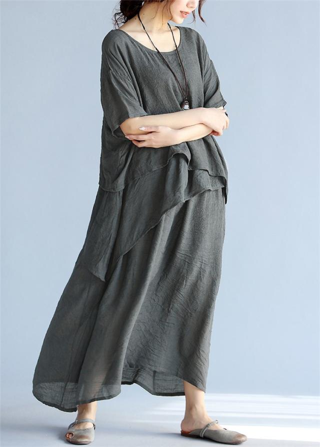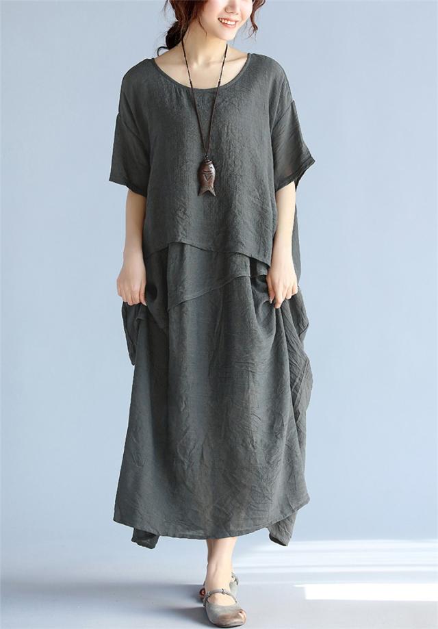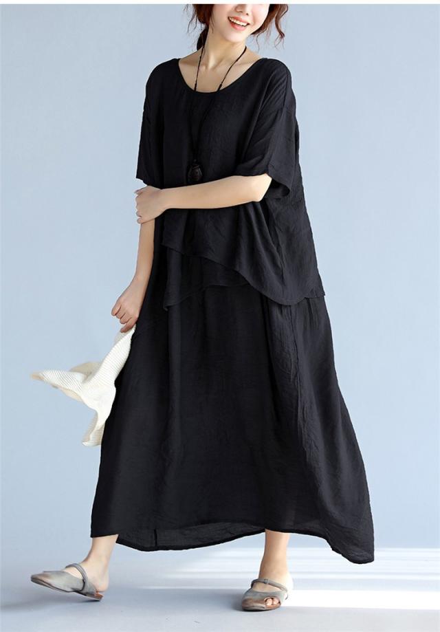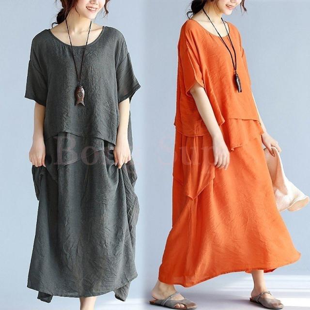 マキシワンピース ワンピース レディース 40代 不規則 マキシ丈 ワンピ 大きいサイズ 綿麻 半袖ワンピース 大人 夏 韓国 おしゃれ 婦人服