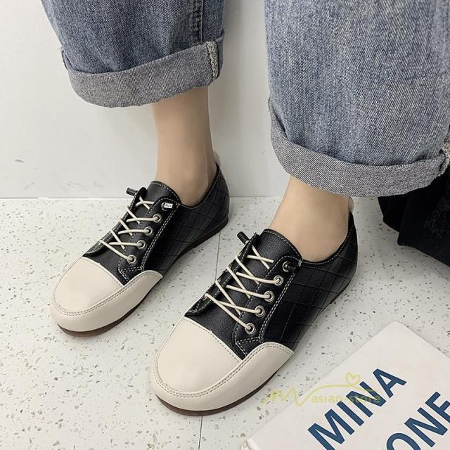 スニーカー レディース ローカット PU レザー フラット ローファー カジュアル レースアップ 歩きやすい 疲れにくい トレンド 婦人靴 おしゃれ カジュアル