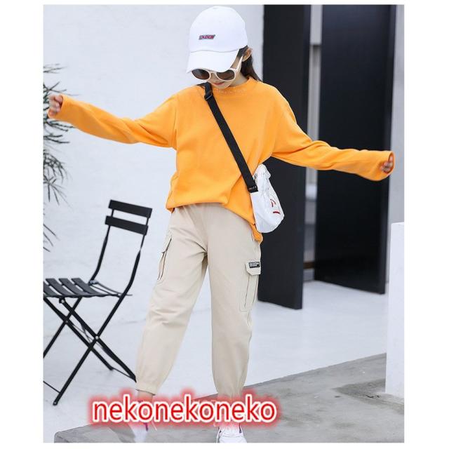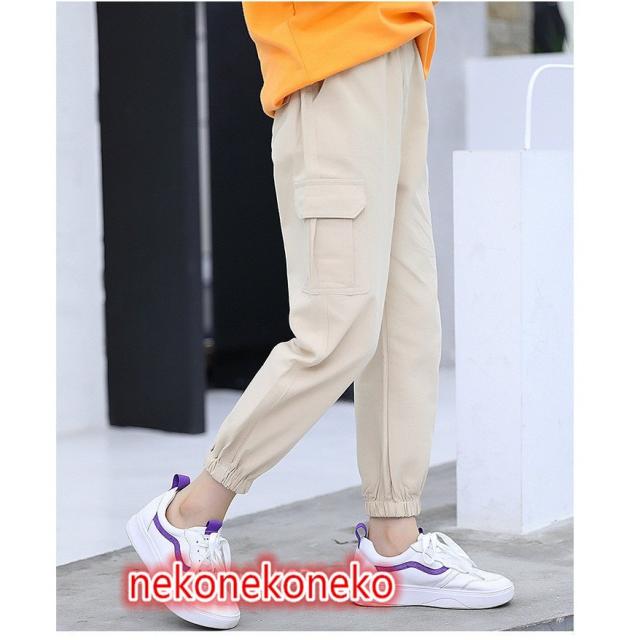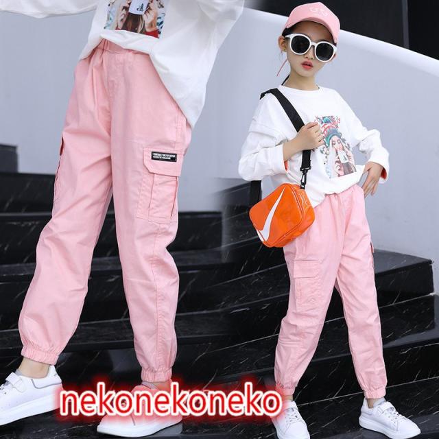 キッズ カーゴパンツ ミリタリー 女の子 カジュアル ロングパンツ 長ズボン ボトムス 韓国こども服 ゆったり 無地 ウエストゴム ジュニア服 ダンス衣装 演出
