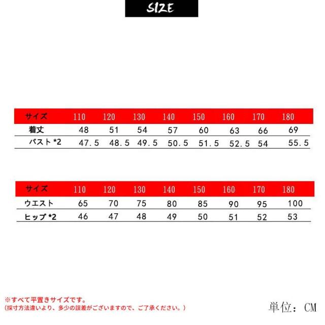 | サイズについての説明 | 【サイズ】 【120】参考身長110-120cm 【130】参考身長120-130cm 【140】参考身長130-140cm 【150】参考身長140-150cm 【160】参考身長150-160cm 【170】参考身長160-170cm 【180】参考身長170-180cm |