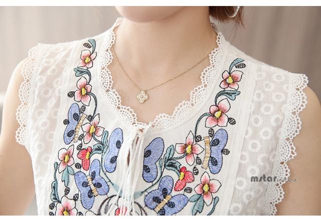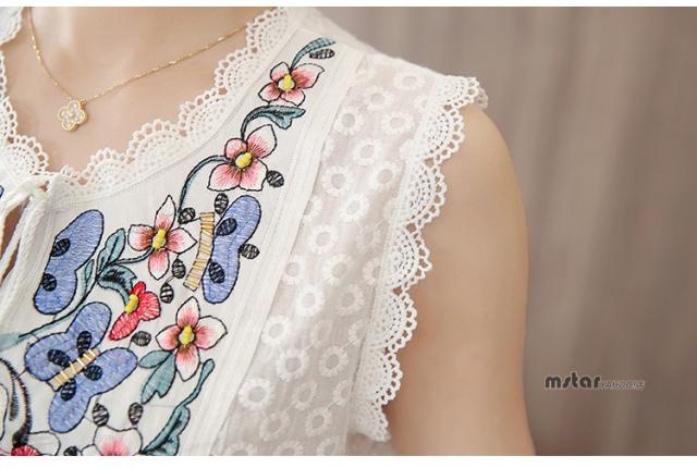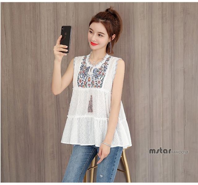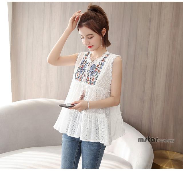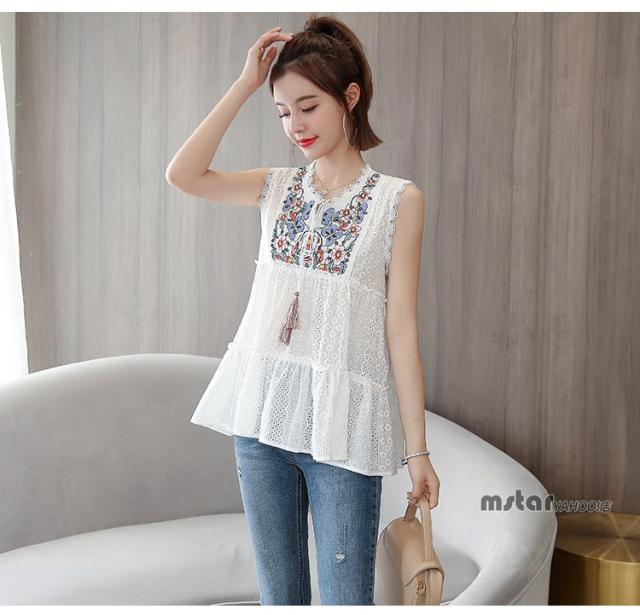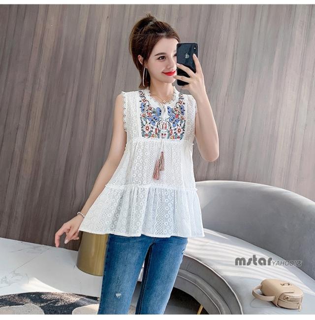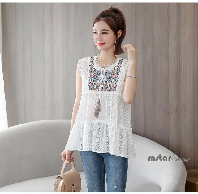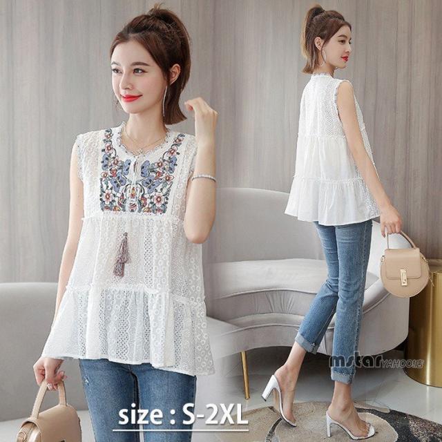 ブラウス ノースリーブ レディース レース 花柄 刺繍 おしゃれ ペプラム トップス 夏服 涼しい