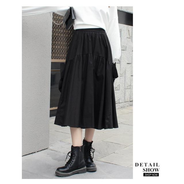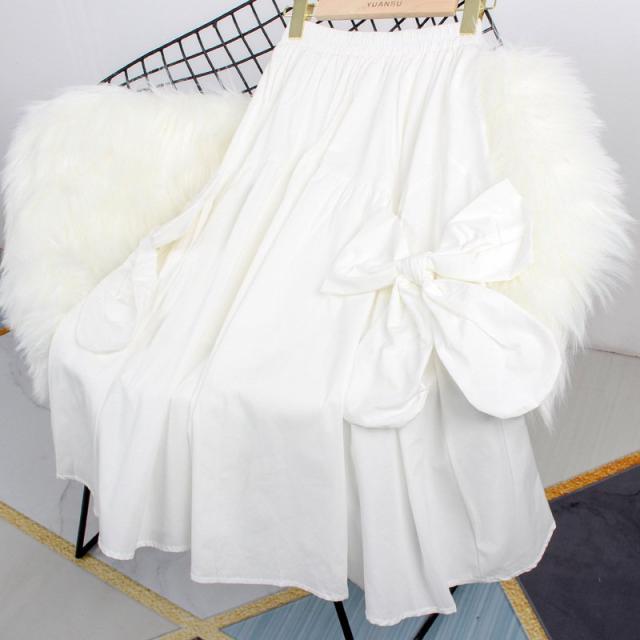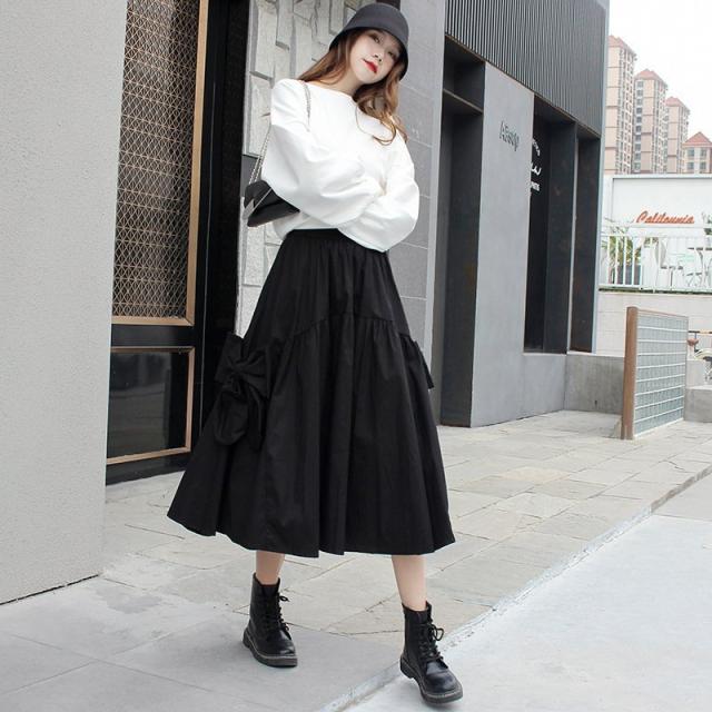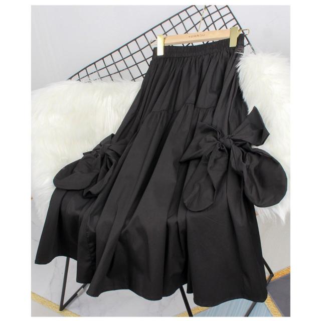 スカート レディース リボン 無地 大振裾 カジュアル ウエストゴム ハイウエスト 春 2021