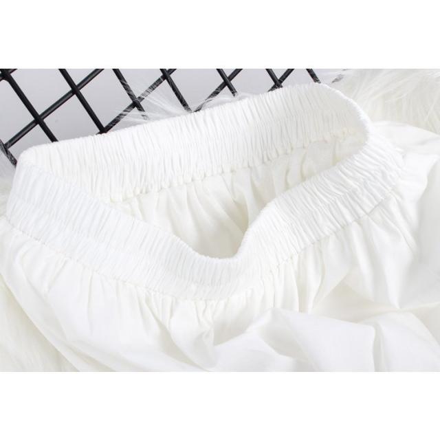 | サイズについての説明 | カラー:ホワイト ブラック サイズ ウエスト 着丈 F 60-90 80 注意事項: ※ 平置き素人採寸ですので多少の誤差はご容赦下さい。 ※ モニタ環境によって、商品の色合いが多少違う場合があります。 |
