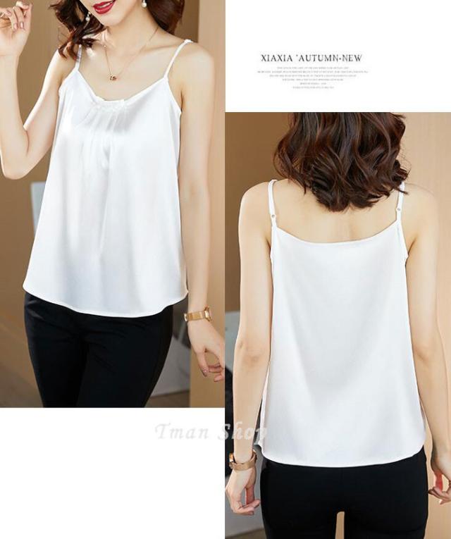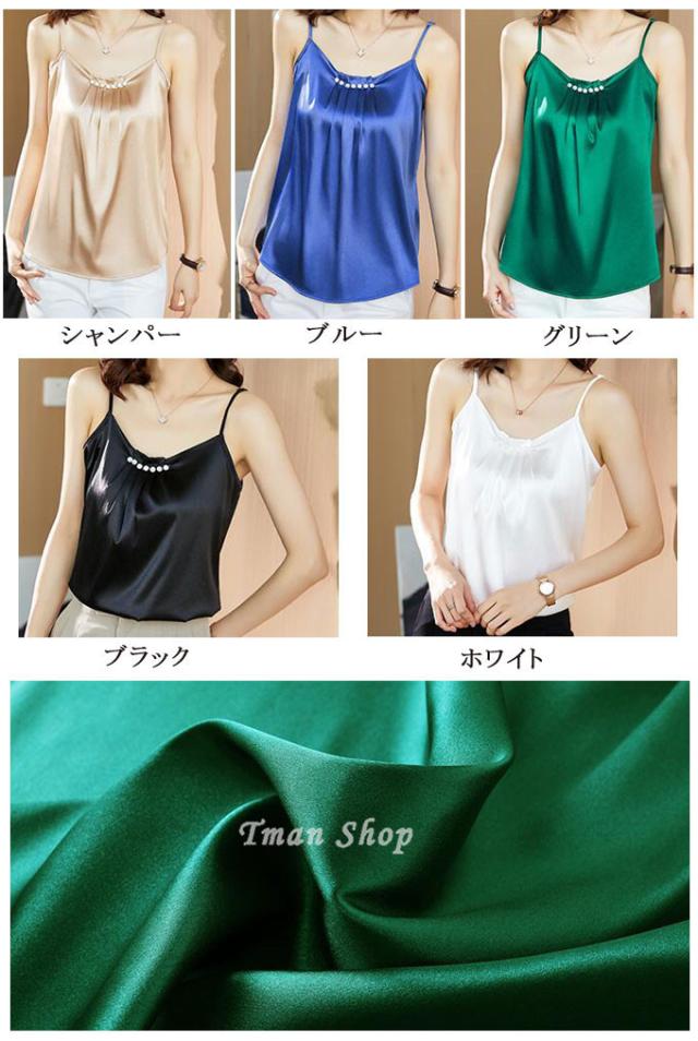キャミソール レディース インナー トップス サテン調 光沢感 ブラウス ノースリーブ スーツインナー 上品 フォーマル おしゃれ 春夏 新作 送料無料