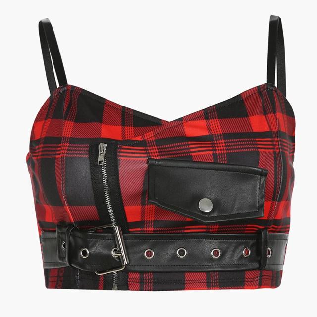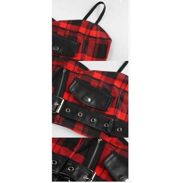 【seiu-】キャミソール タンクトップ レディース インナー チェック柄 ノースリーブ 重ね着 肌着 トップス 夏 20代30代 女性 hiphop ヒップホップ ダンス衣装
