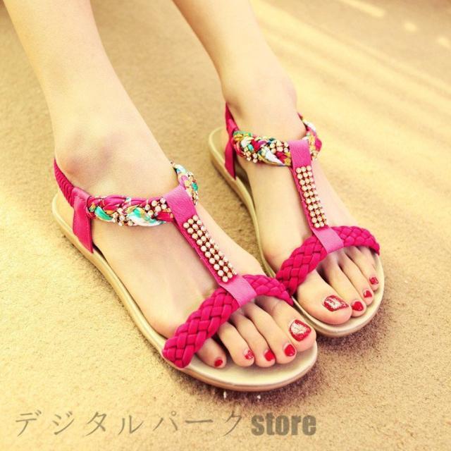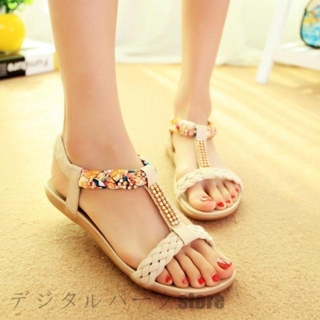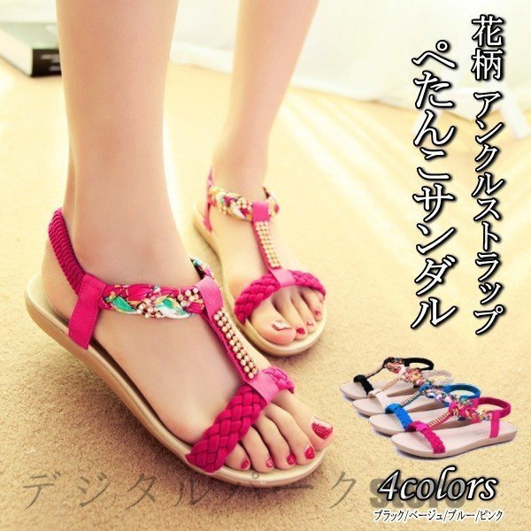 レディース 花柄 アンクルストラップ ぺたんこサンダル 夏サンダル カジュアル 花柄ストラップ サンダル シューズ 歩きやすい 痛くない スポーツ 大きいサイズ