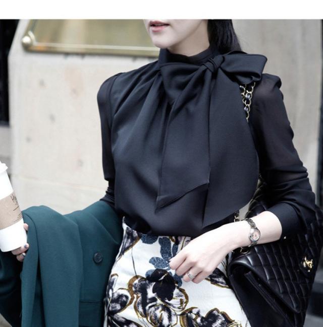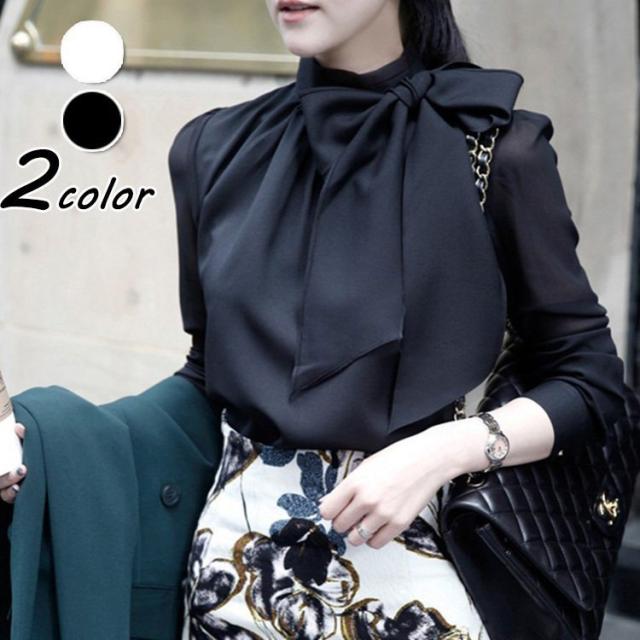 ブラウス レディース 長袖 春秋 おしゃれ 無地 シフォン ブラウス きれいめ 韓国風 ブラウス トップス 通勤 着痩せ