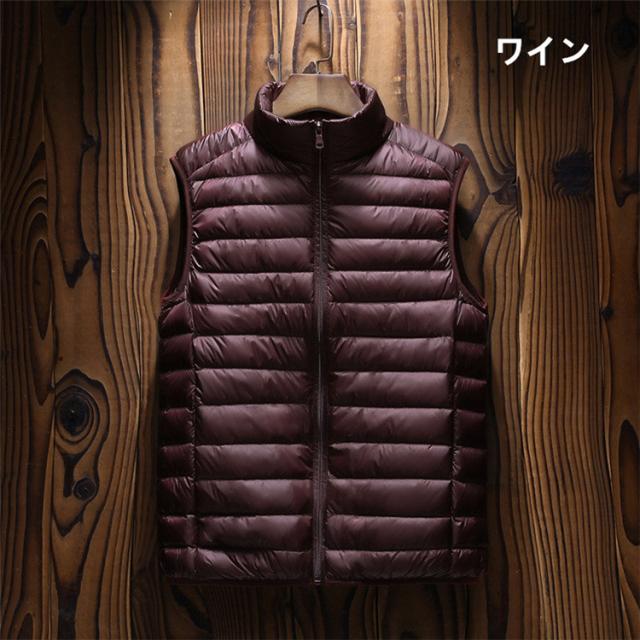 ダウンベスト ベストジャケット フードなし メンズ レディース 軽量 暖かい 防寒 保温 ダウン50% 仕事 通勤 あったか