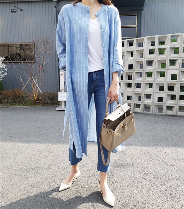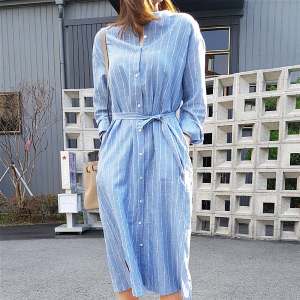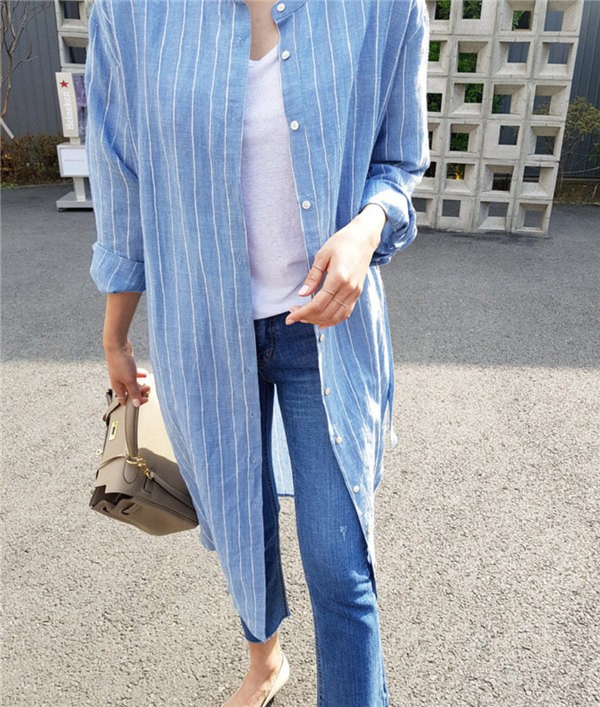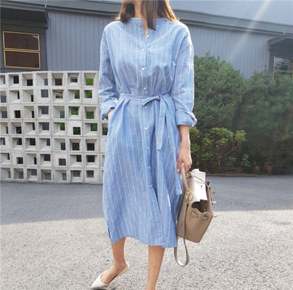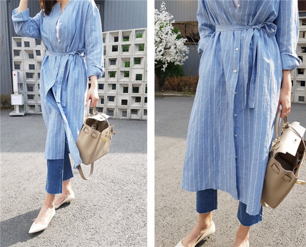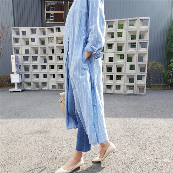送料無料 ロングカーディガン シャツワンピース ストライプ ロングワンピース ロングシャツ レディース Vネック ロングブラウス 大きいサイズ 長袖 ゆったり