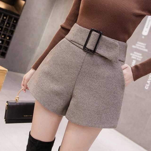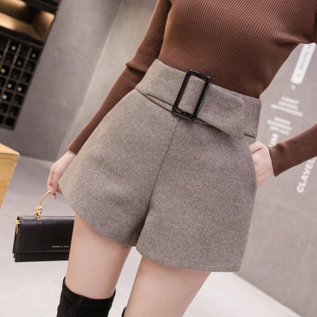 ショートパンツ レディース 冬 aラインパンツ 短パン 美脚 ワイド ベルト ハイウエスト 短パン 秋冬 新作 ボトムス