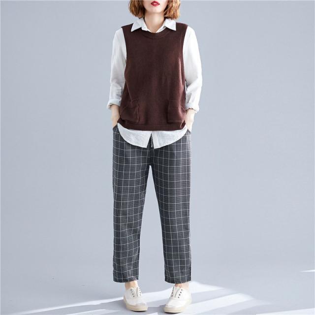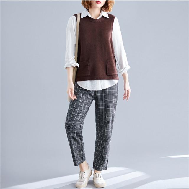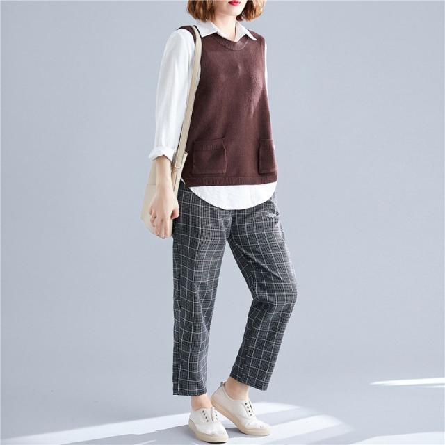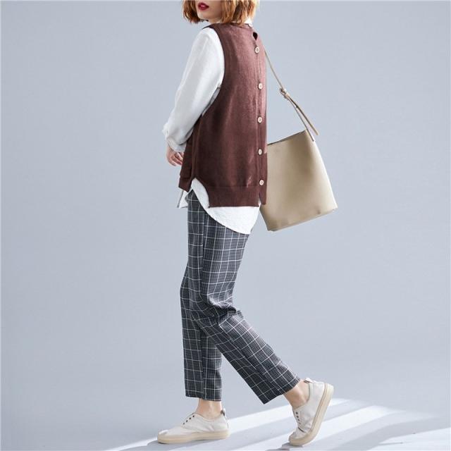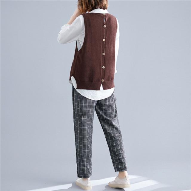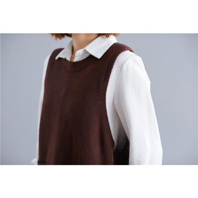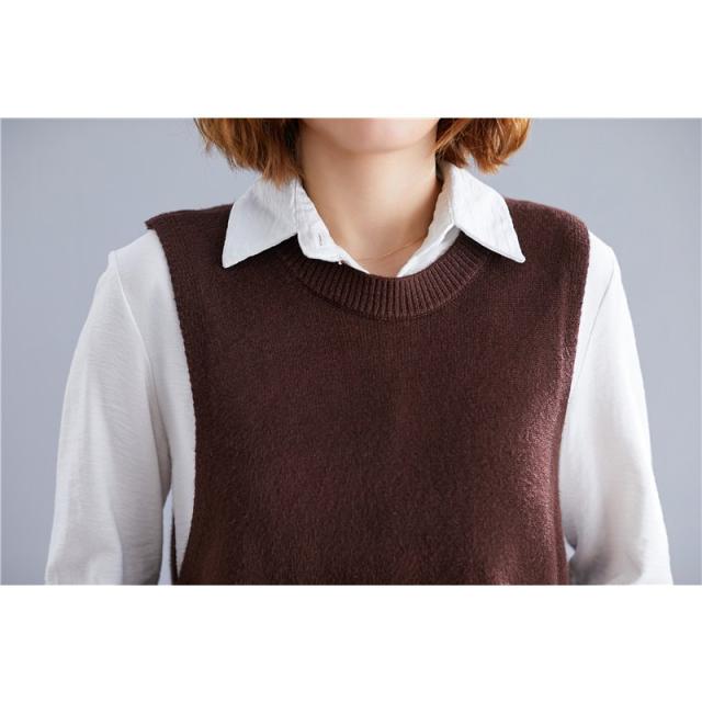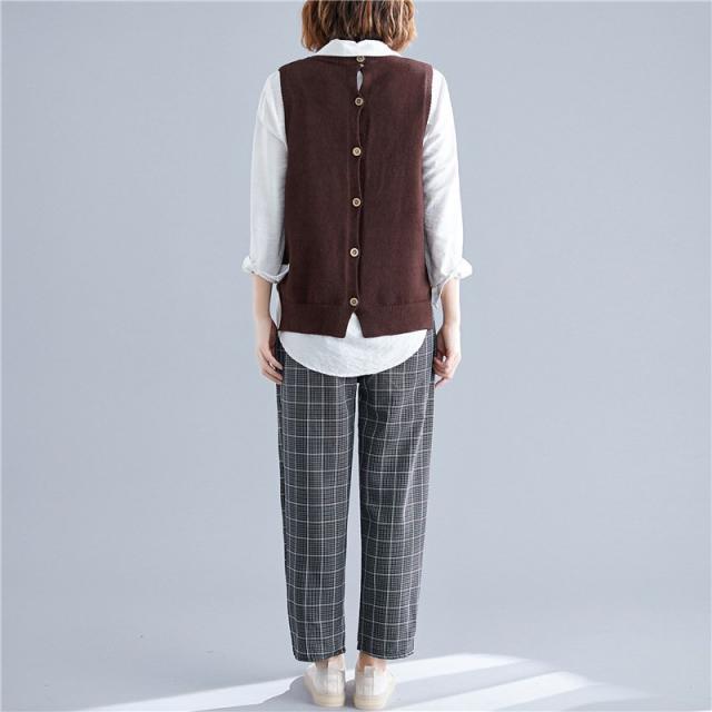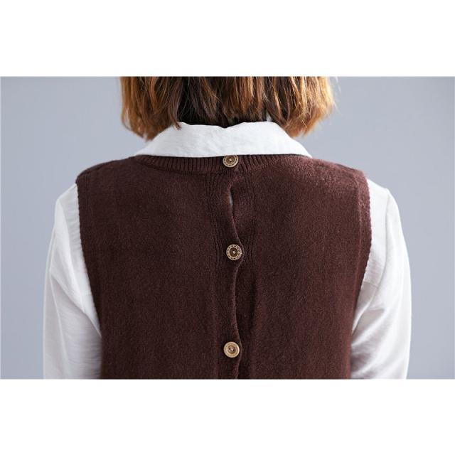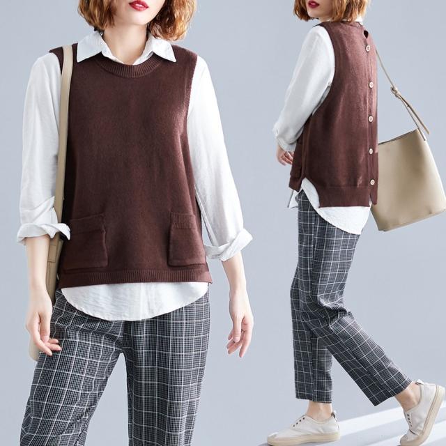 春服新品トップスセーターベストオシャレ大きいサイズ レディースおしゃれ体型カバー 後ろボタンニットシャツ重ね着 伸縮 ゴム編み 春 30代 40代