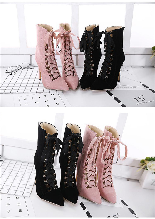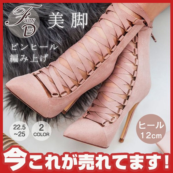 ショートブーツ レディース ヒール12cm レースアップブーツ 厚手 美脚ピンヒール 編み上げ お姫様 ミドルブーツ ブーティ 夜店 袴ブーツ 長靴アン
