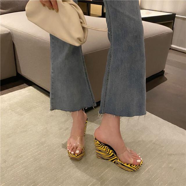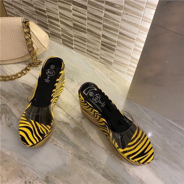 シューズ ミュール ヒールサンダル ゼブラ柄 透け感 ゴージャス 美脚 ウェッジソール ミセス 二次会 コンテスト イベント キレイ目 /[zch25]