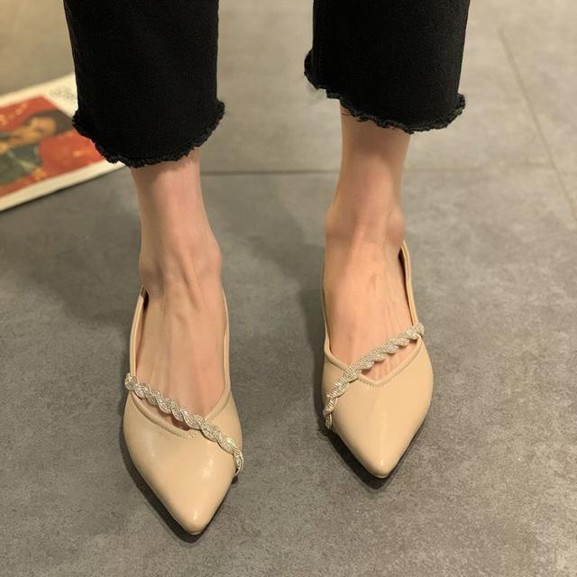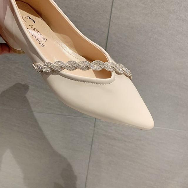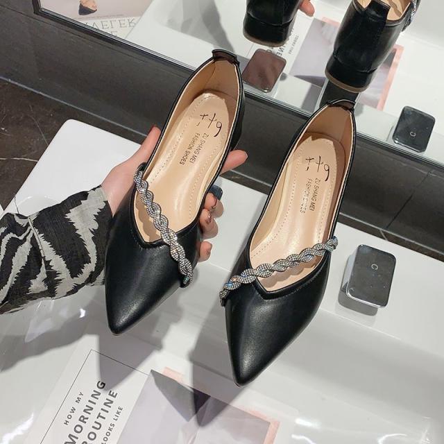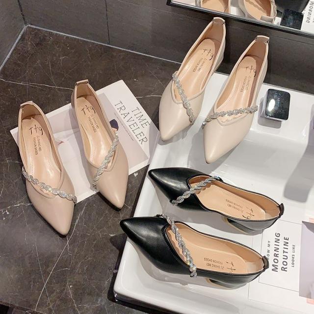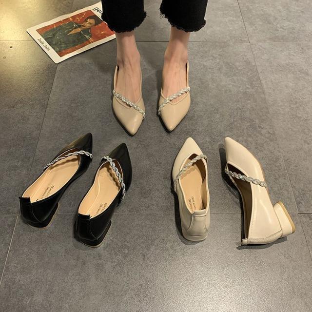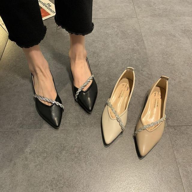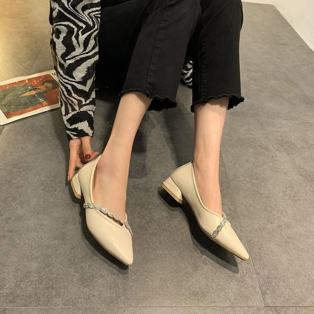 シューズ パンプス チャンキーヒール 安定ヒール シャープ 装飾 キラキラ 個性的 上品 贅沢 OL イベント 母親 シック きれいめ 大人美人 /[zci09]
