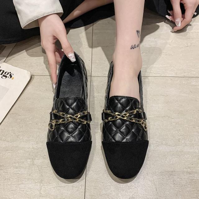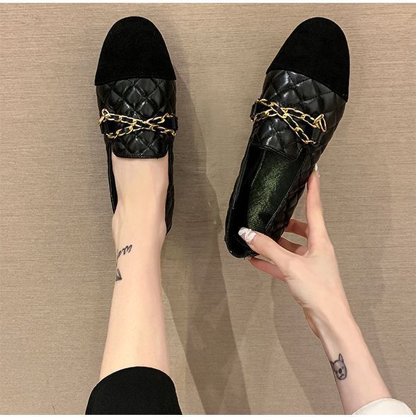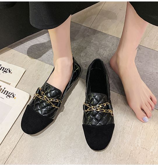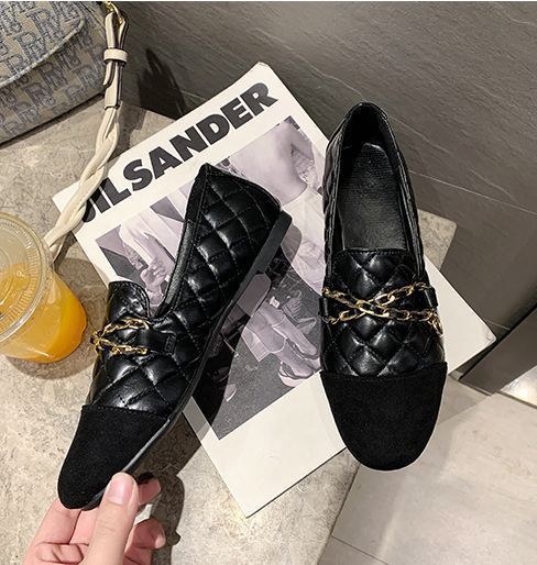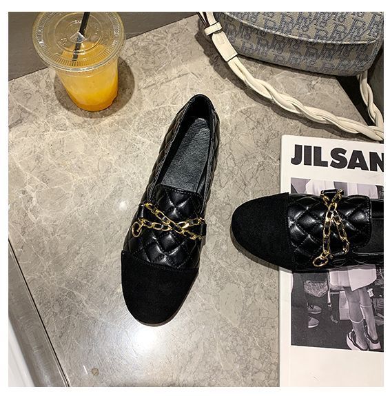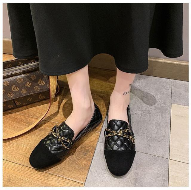 | サイズについての説明 | シューズ ローファー パーティーシューズ パーティ靴 ラウンドトゥ フラット ヒール低い 安定ヒール 無地 レザー調 合皮 PU 異素材 かっこいい 装飾 ブラック 黒 光沢感 キルティング ステッチ 金具 チェーン マニッシュ 個性的 カジュアルコーデ 食事会 |