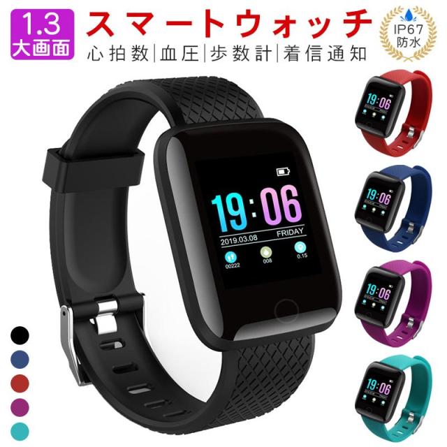 スマートウォッチ スマート腕時計 腕時計 ブレスレット 1.3インチ大画面 ブレスレットフルタッチスクリーン心拍計 血圧計歩数計 IP67防水 SMS通知 得トクセール