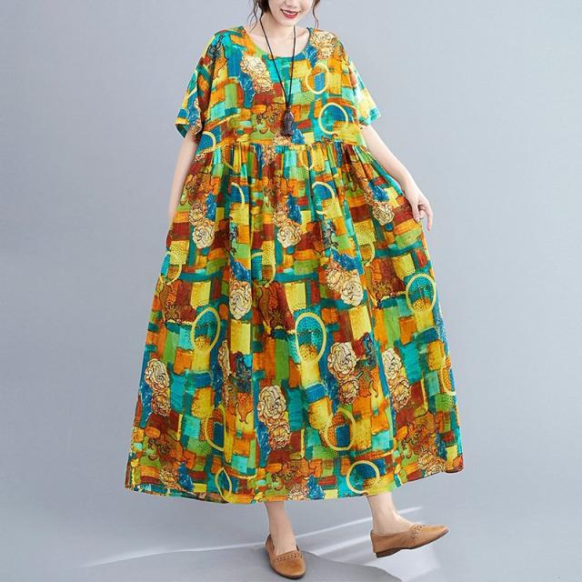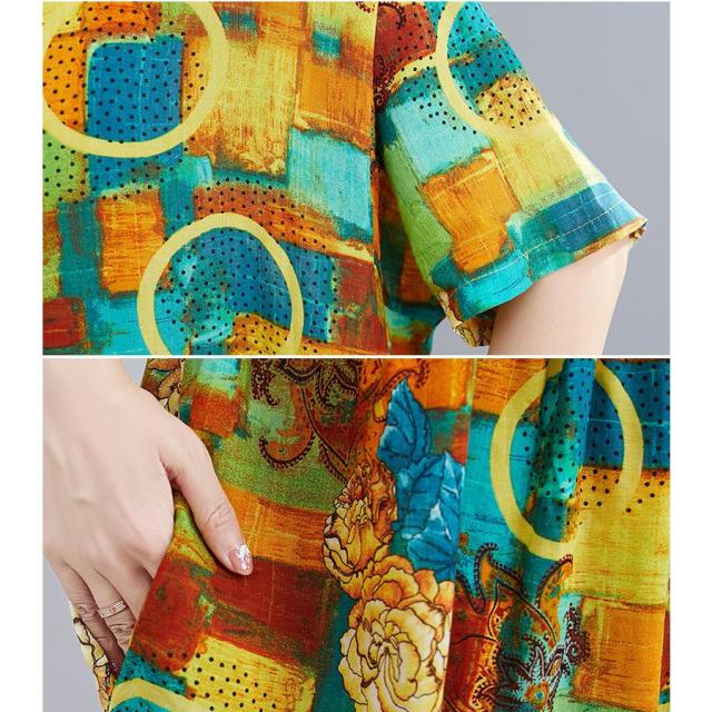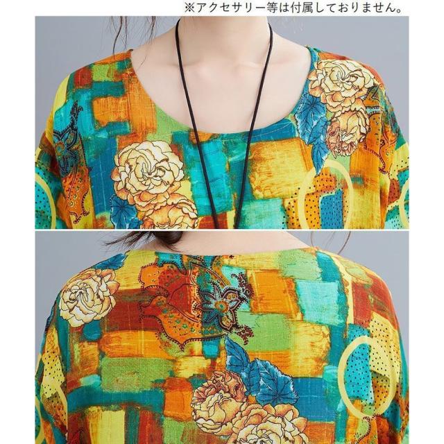 | サイズについての説明 | ゆったりめシルエットで体型カバーになるレディースロングワンピース。 五分袖で二の腕が隠れるもうれしいポイント♪ 楽に着れるからおうち時間にもお出かけにもおススメ◎ 【サイズについて】 着丈120cm バスト142cm 肩幅50cm 袖丈20cm 裾まわり266cm |
