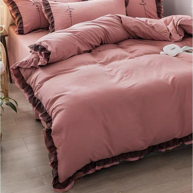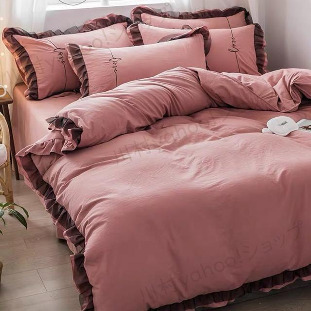布団カバー ベッドカバー 綿 4点セット 春夏 無地 ピンク ベッドカバー 寝具セット 寝具カバー 掛け布団カバー シングル ダブル 大人 かわいい おしゃれ