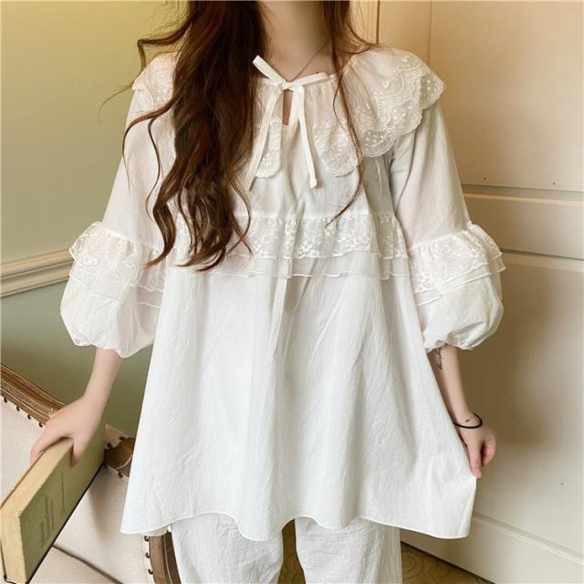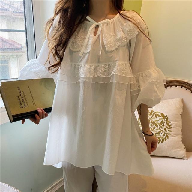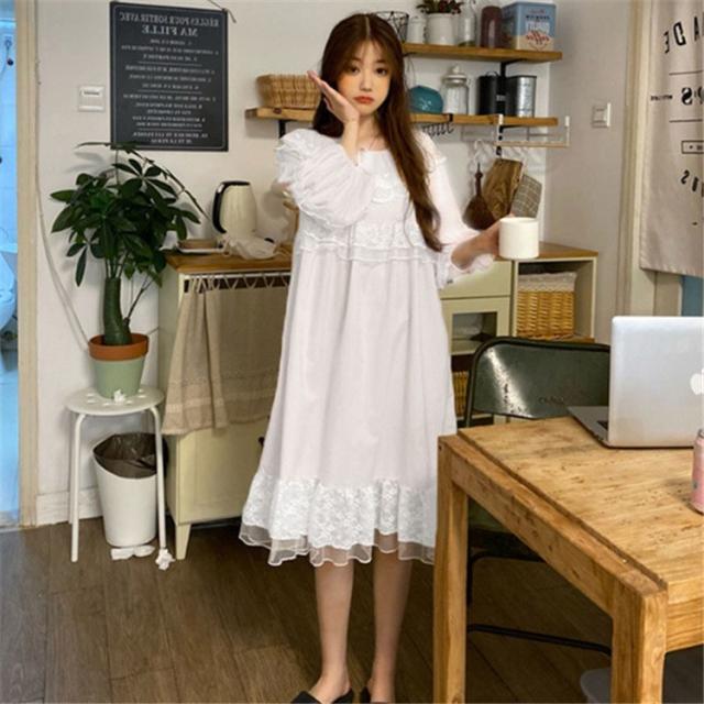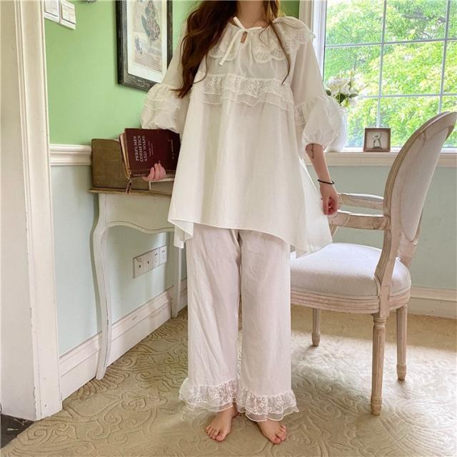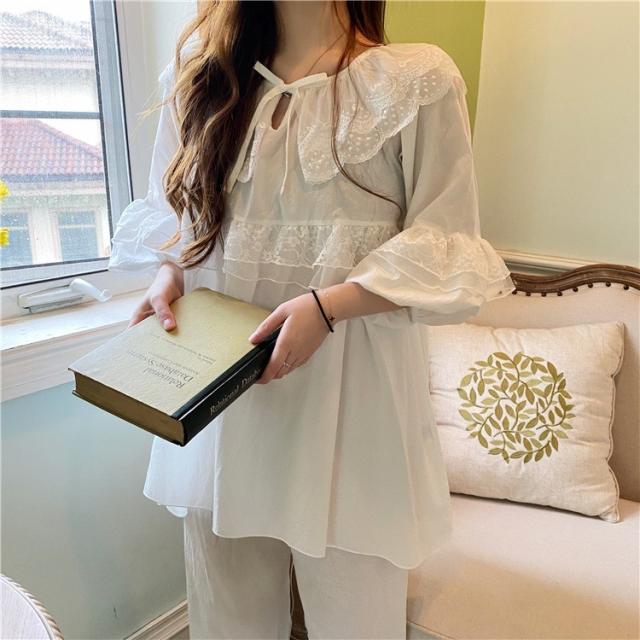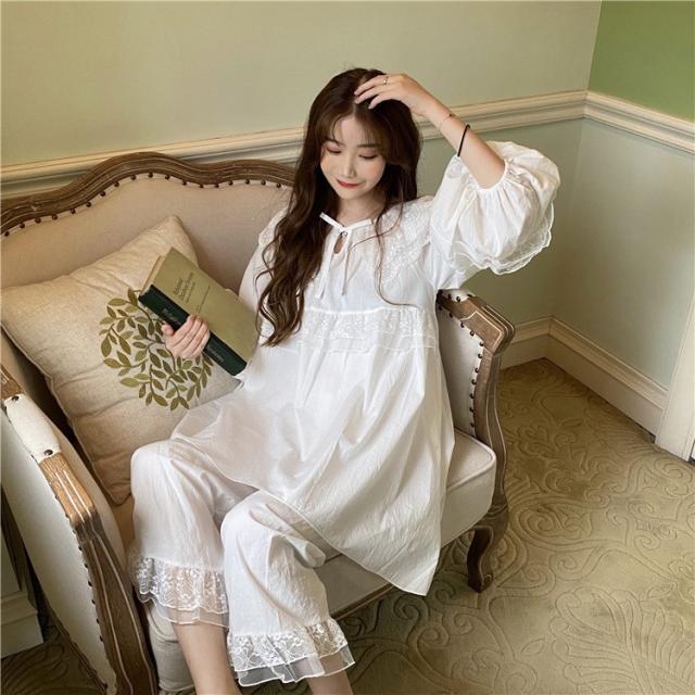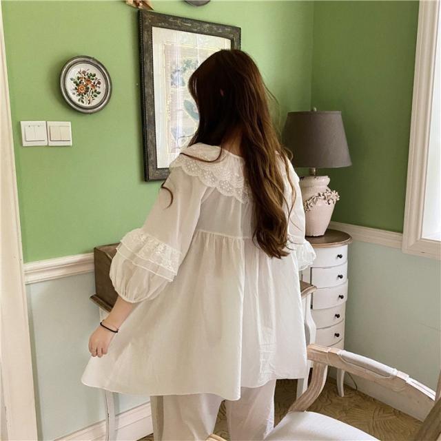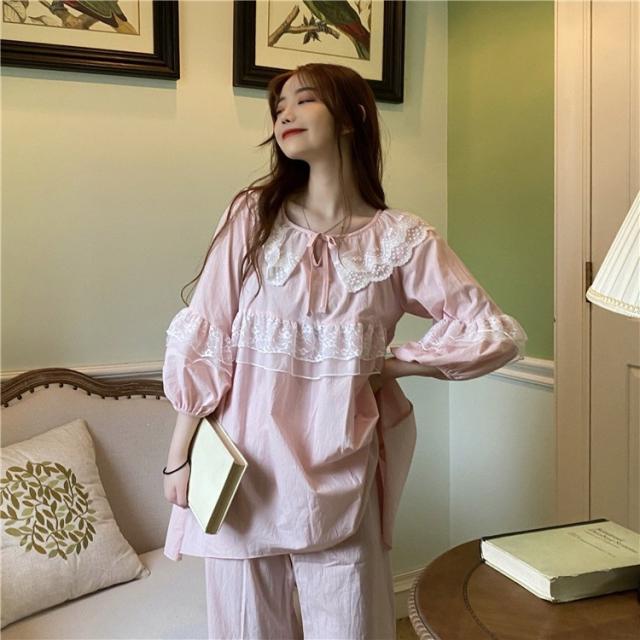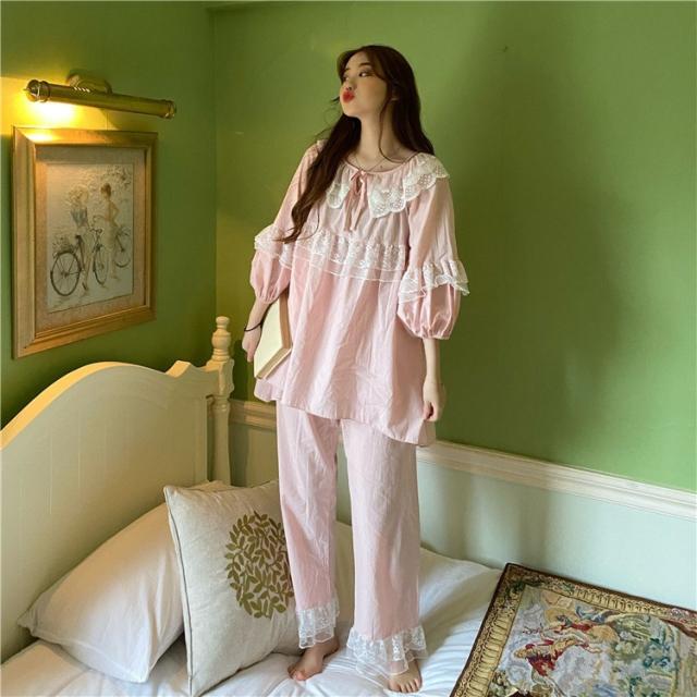 パジャマ レディース 春 夏 秋 長袖 綿 セットアップ レース ナイティ ルームウェア 女性 可愛い 部屋着 女性パジャマ ピンク 韓国風