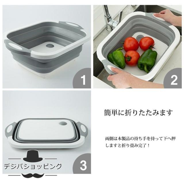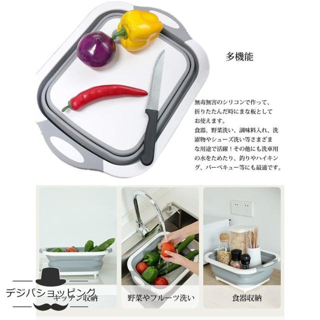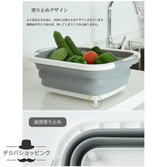 洗い桶 折りたたみ まな板 折りたたみバケツ ワンタッチ排水 水切り 食器収納 コンパクト シリコン製 持ち手 たためる洗い桶 バケツ キッチン アウトドア