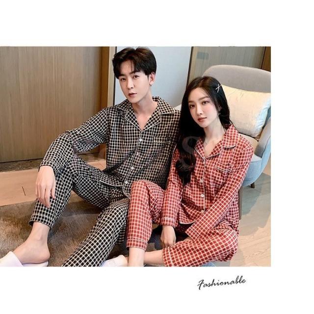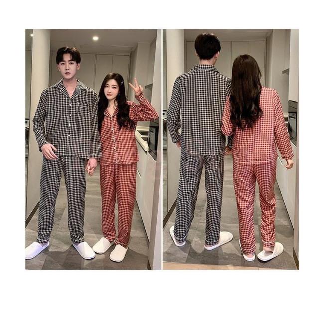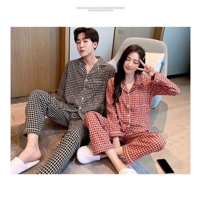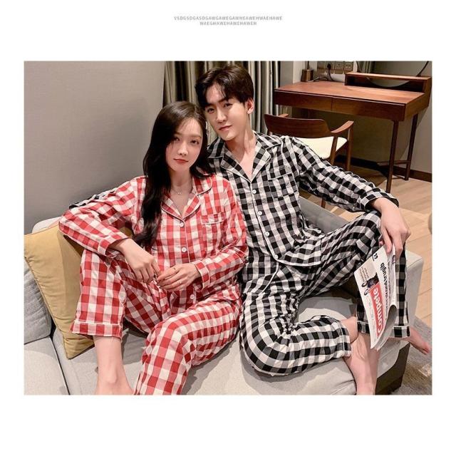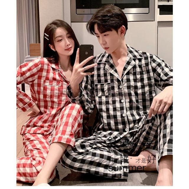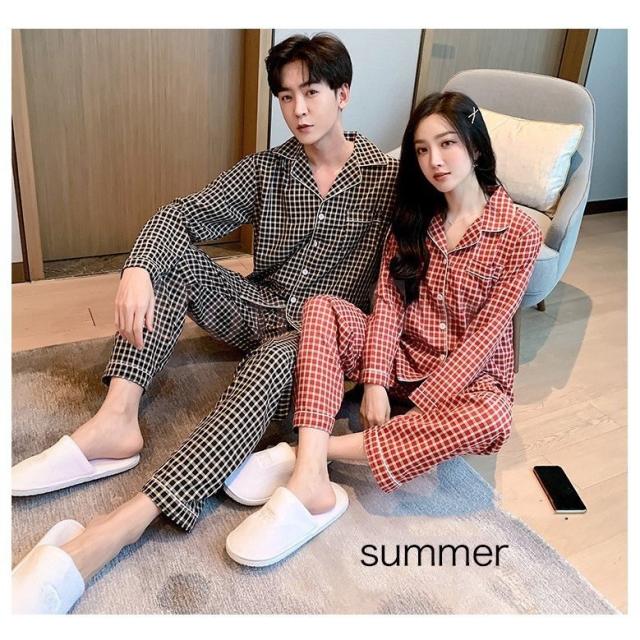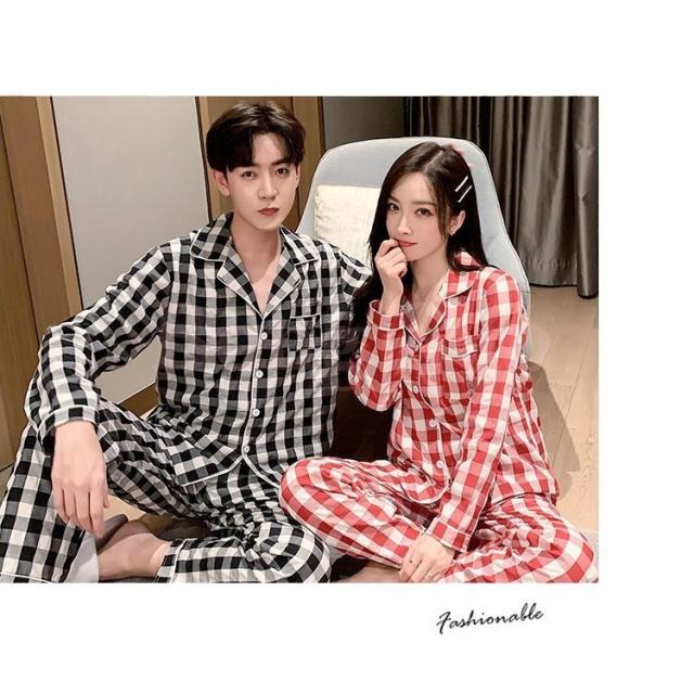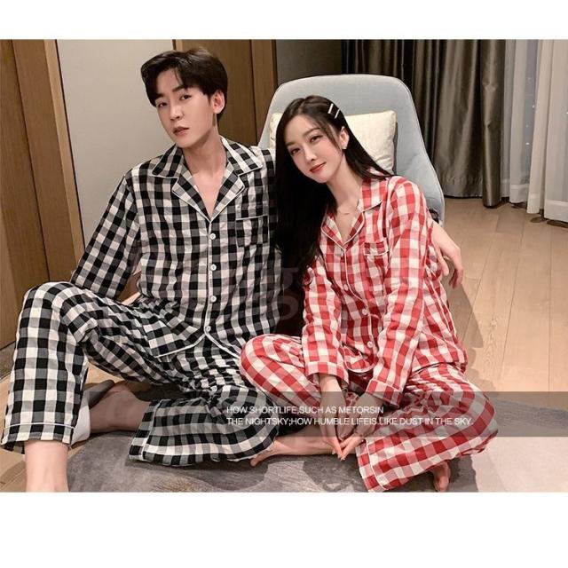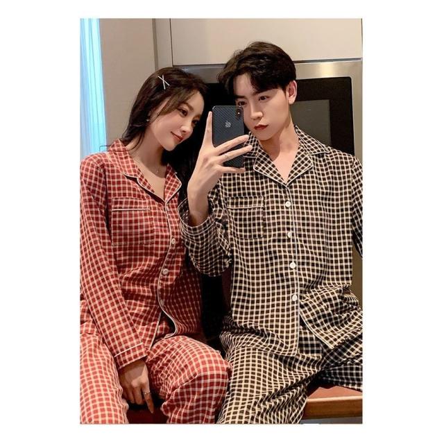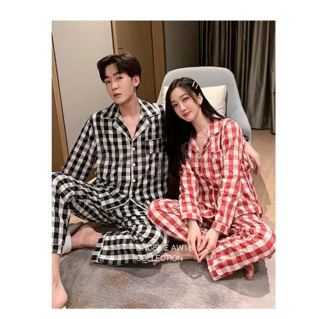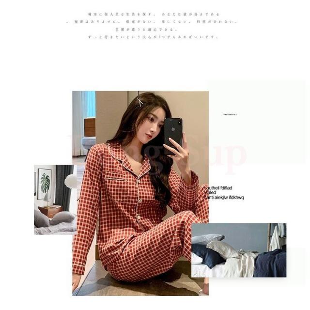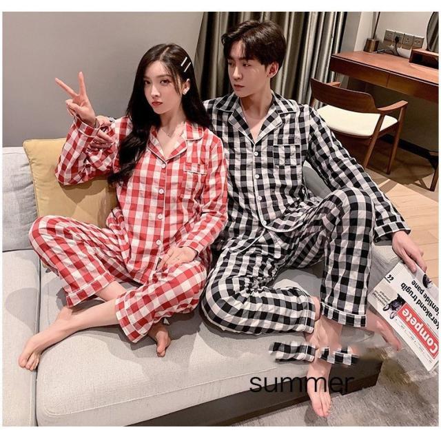 カップルパジャマ ペアパジャマ 春夏秋冬 長袖ルームウェア 綿 ペアルック 寝巻き 可愛いチェック柄上下セットレディース/メンズ部屋着 オシャレ ギフト