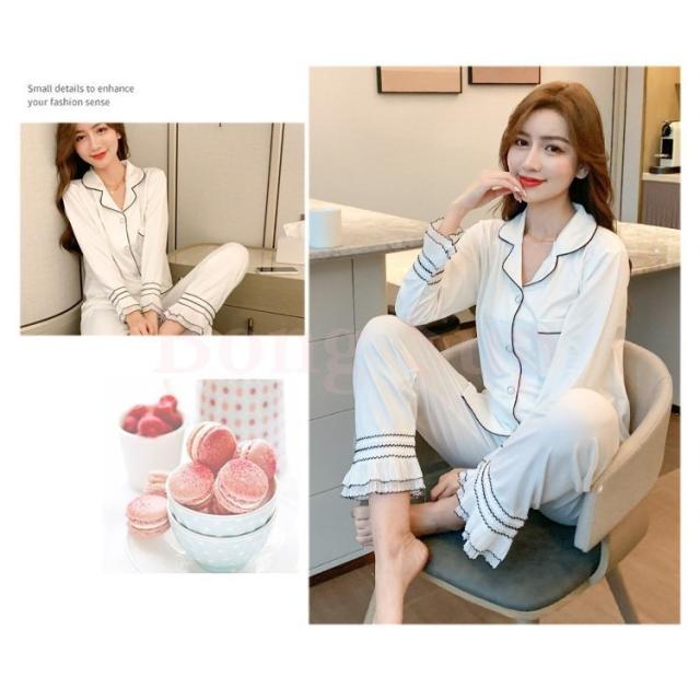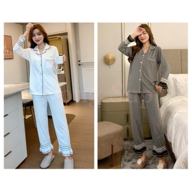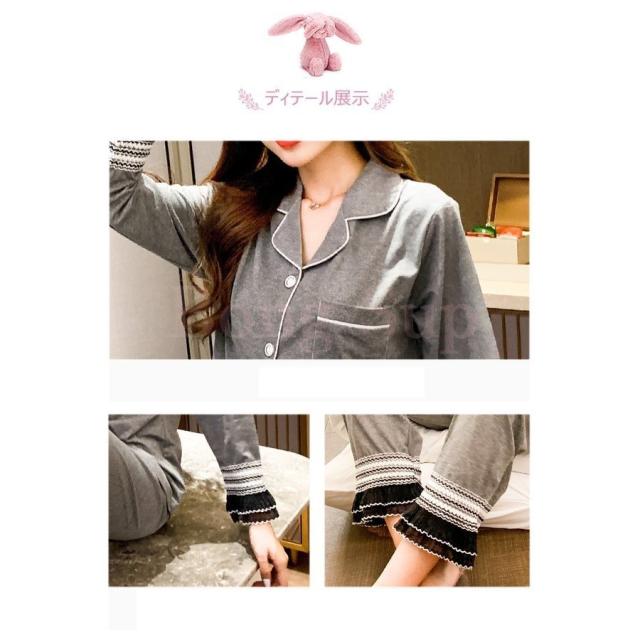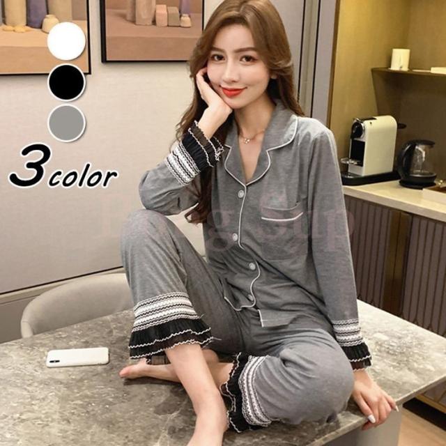 パジャマ ルームウェア レディース 春秋冬 長袖パジャマ 前開きフレア ルームウェア モダール綿上下セット 韓国風 パジャマ 部屋着 寝巻き オシャレ 可愛い
