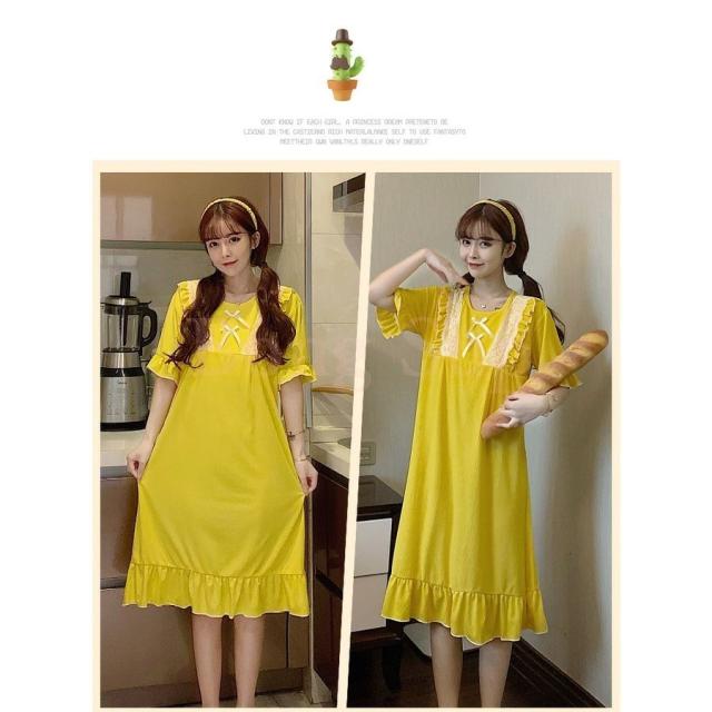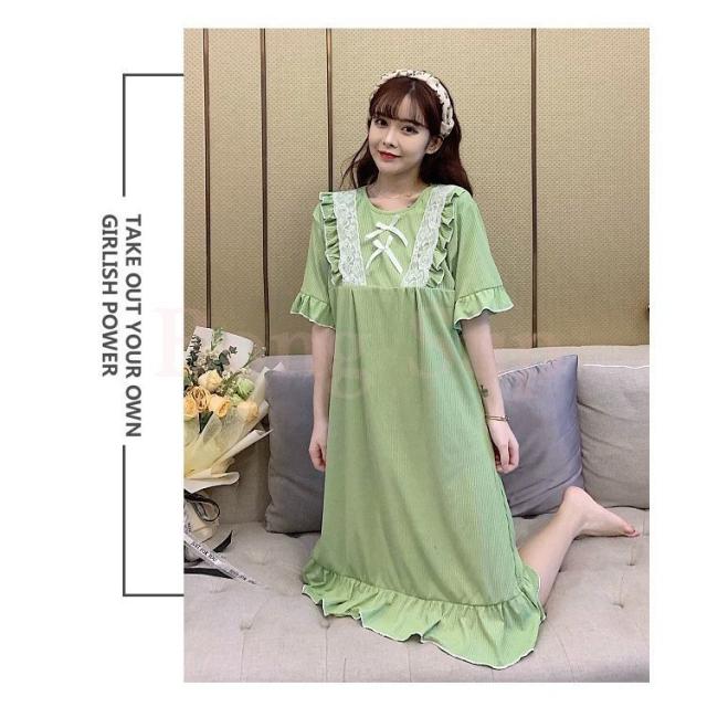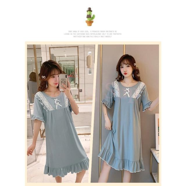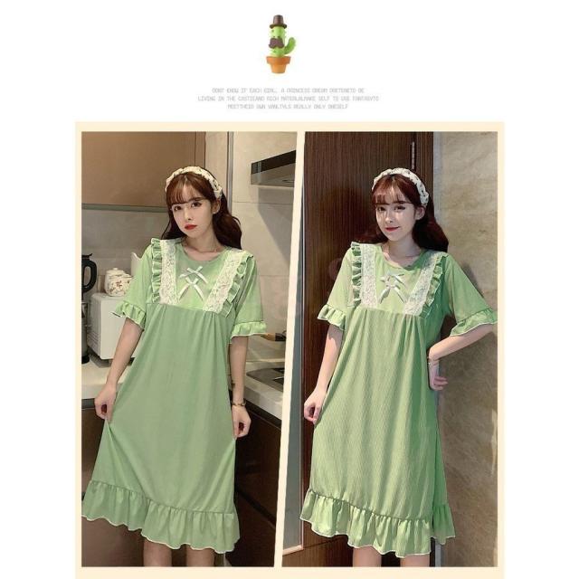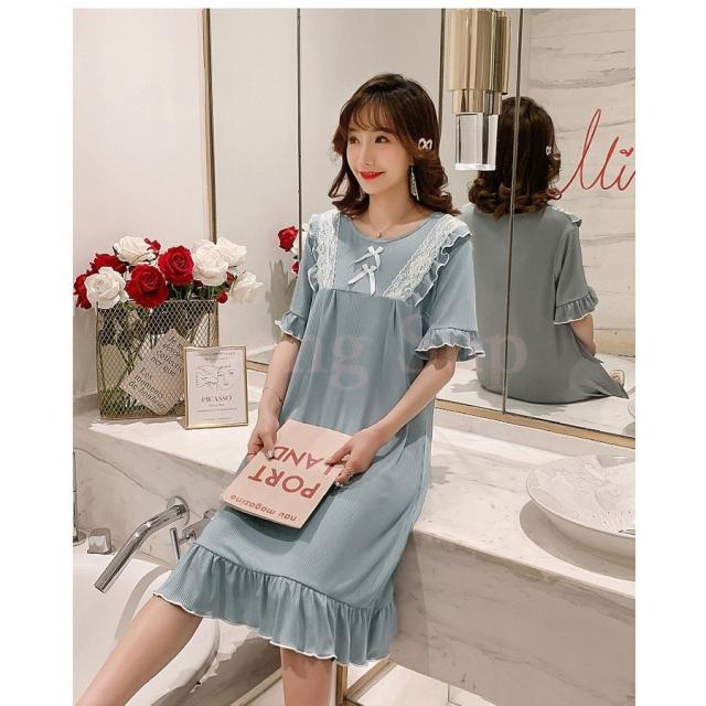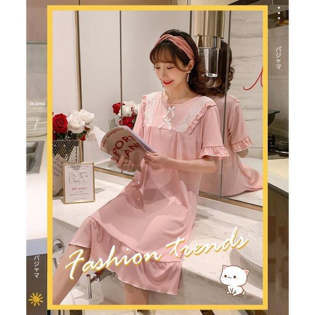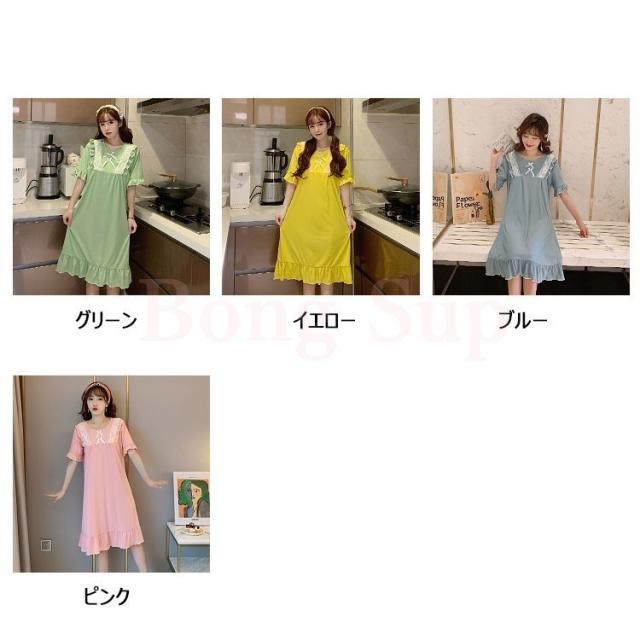 ネグリジェ パジャマ レディース 春夏 半袖ワンピース リボン レースルームウェア ゆったりネグリジェ ロング丈 ナイトロープ 部屋着 大人可愛い オシャレ