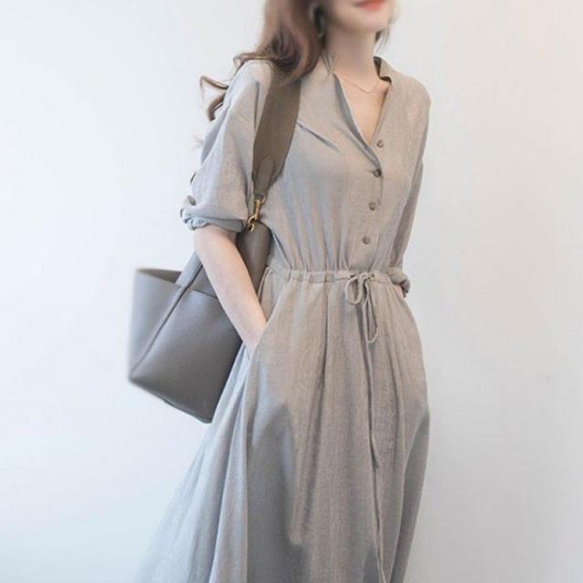 シャツワンピースミモレ丈ワンピースお呼ばれワンピース春夏シャツワンピース黒大きいサイズマキシワンピース通勤通学 袖春物ワンピース 春夏