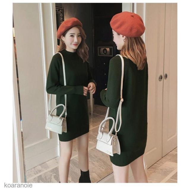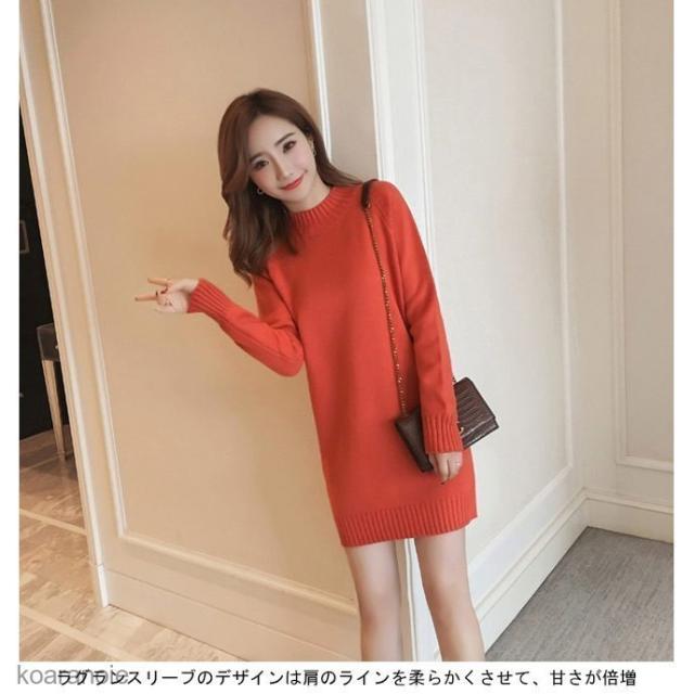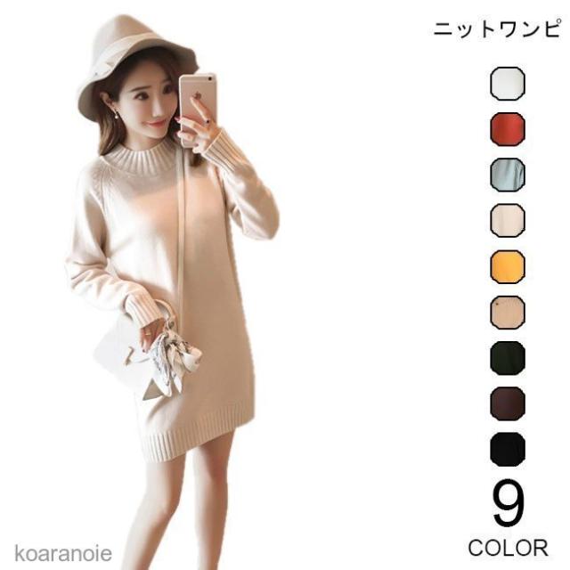 ニットワンピ レディース チュニック ニットセーター ラグランスリーブ 丸襟 ゆったり 女性用 ニット ワンピース シンプル カラバリ