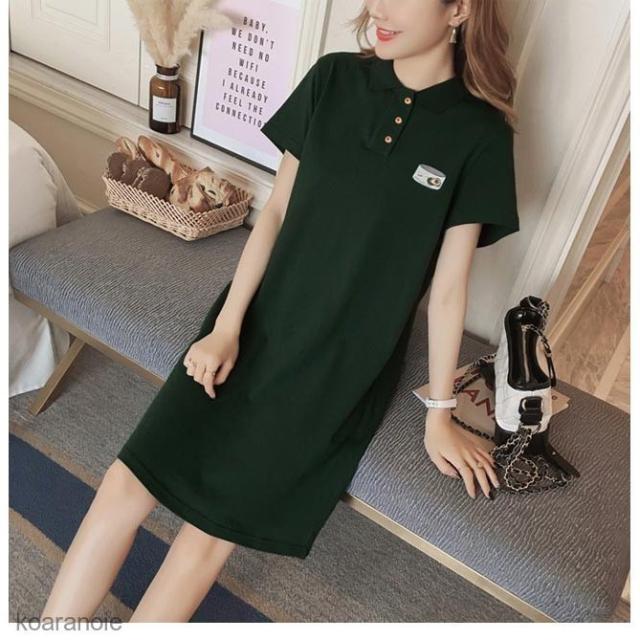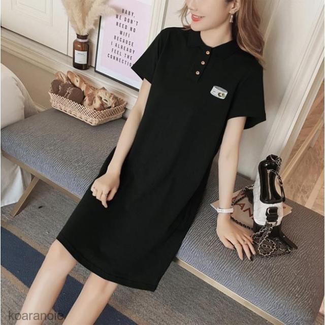 Tシャツワンピース 半袖 レディース 夏ワンピース ロングTシャツ ワンピース ポロシャツ 女性 半袖Tシャツ ショートワンピ カットソー 折り襟