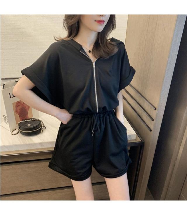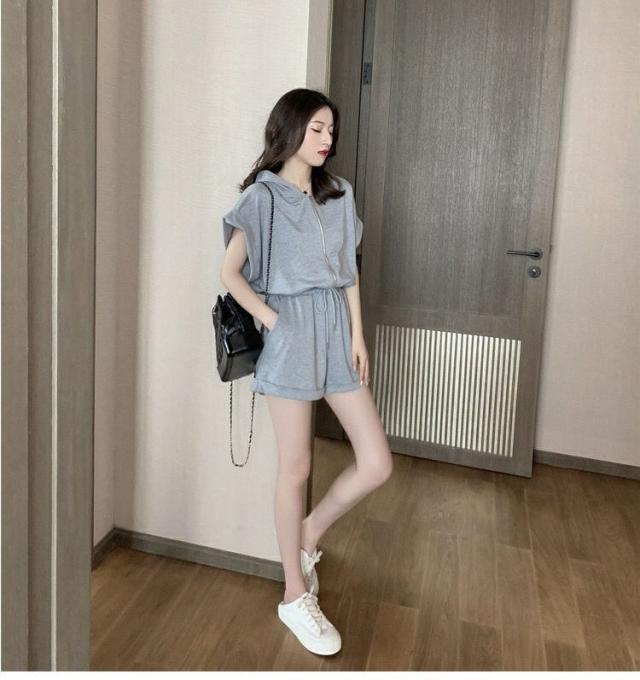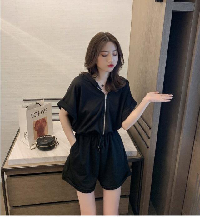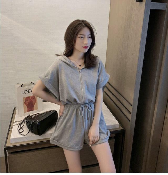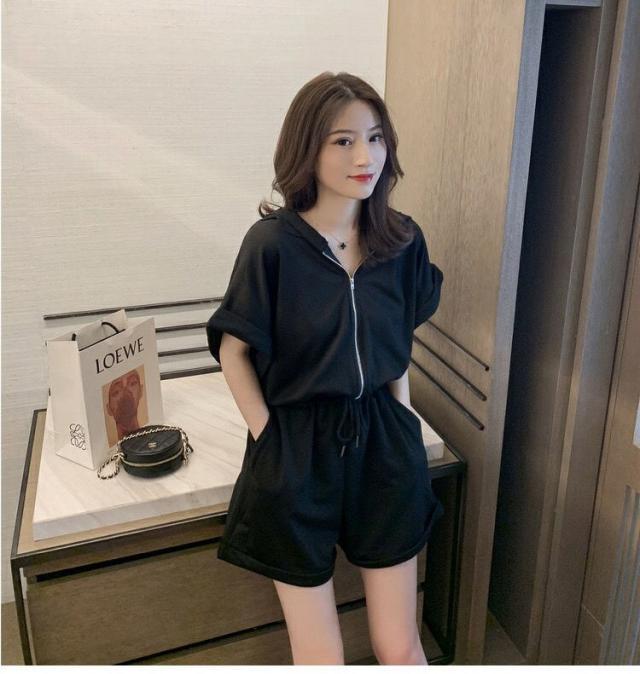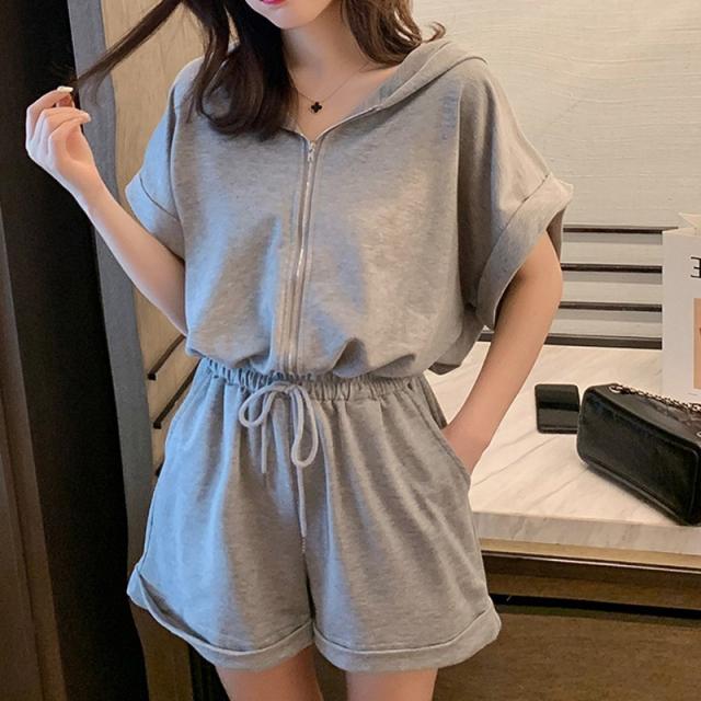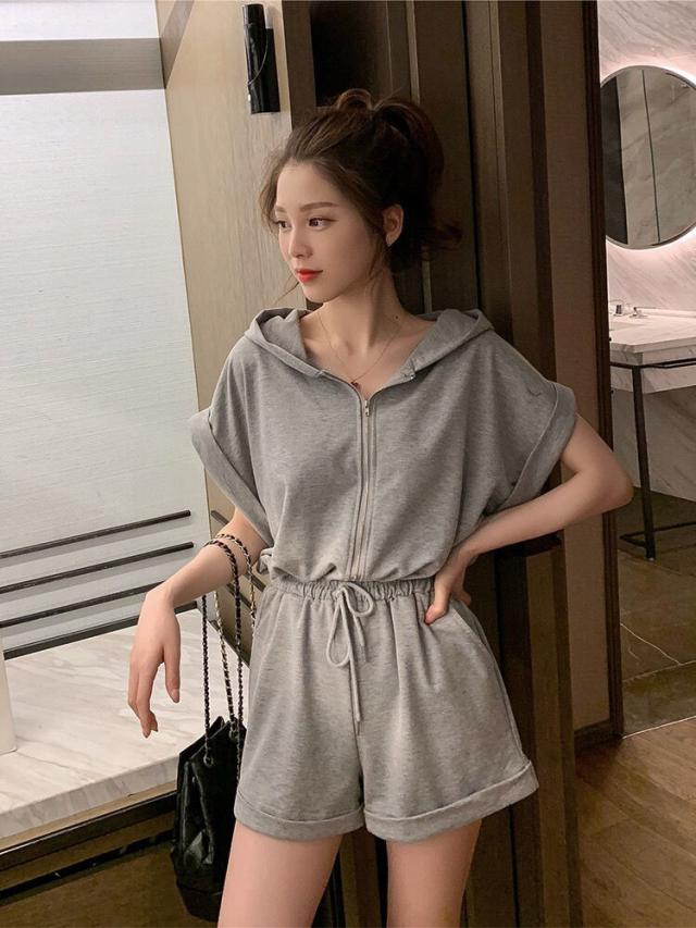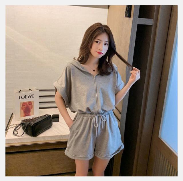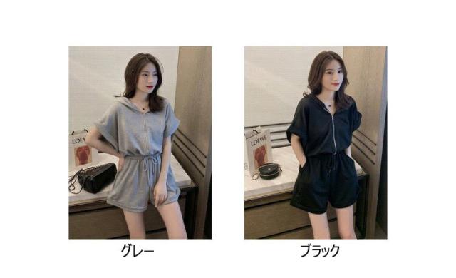 オールインワン ジャージ レディース 40代 夏 半袖オーバーオール ジャージショットパンツ スポーツウェア フード付きスウェット 大きいサイズ カジュアル