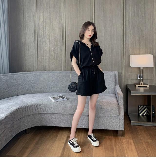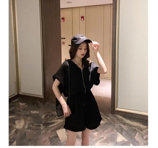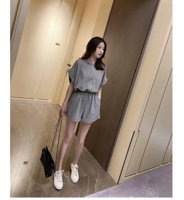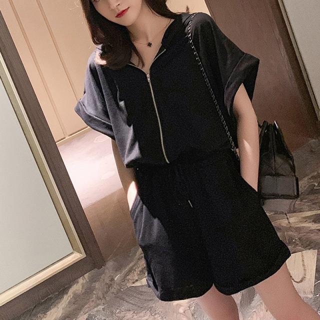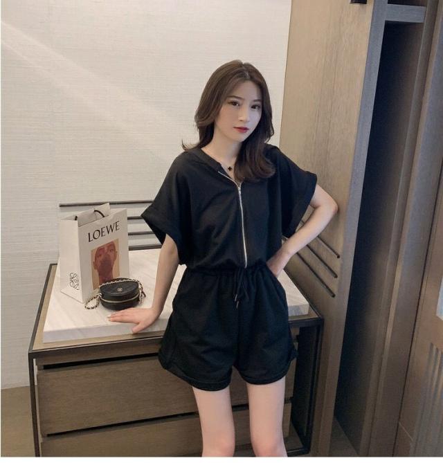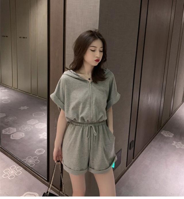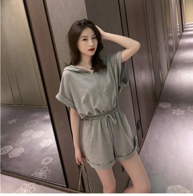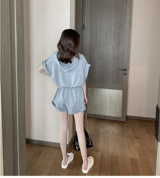 オールインワン ジャージ レディース 40代 夏 半袖オーバーオール ジャージショットパンツ スポーツウェア フード付きスウェット 大きいサイズ カジュアル