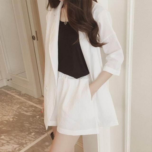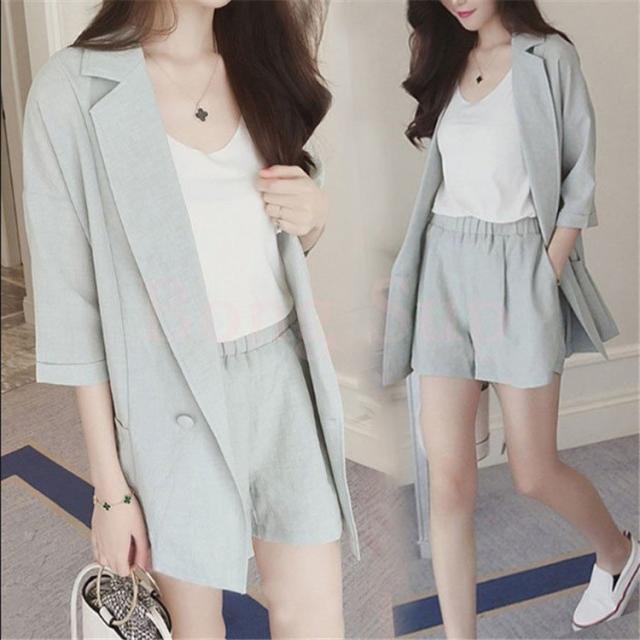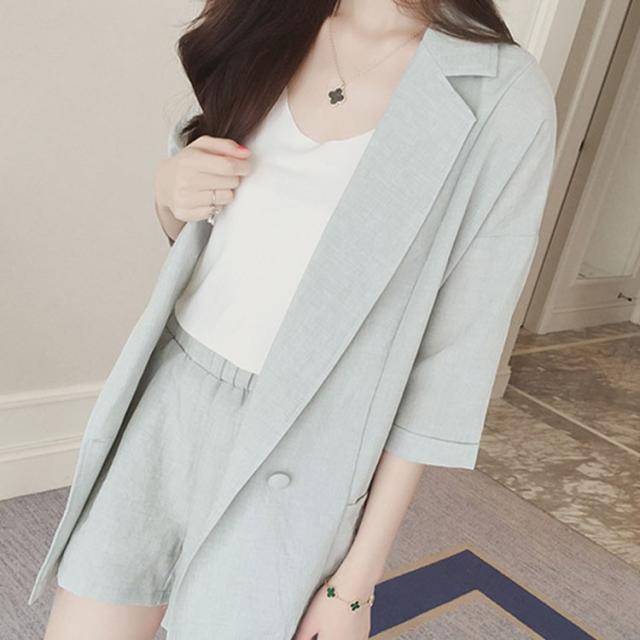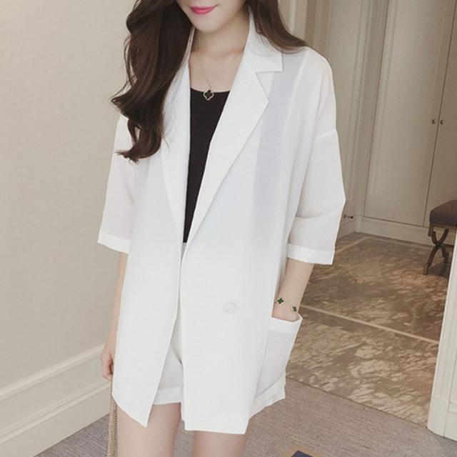 スーツセットアップ レディース 春夏 シフォンスーツセットアップ 薄手 七分袖アウター ショットパンツ 韓国風 大きいサイズ 通勤 OL オシャレ 大人 上品 40代