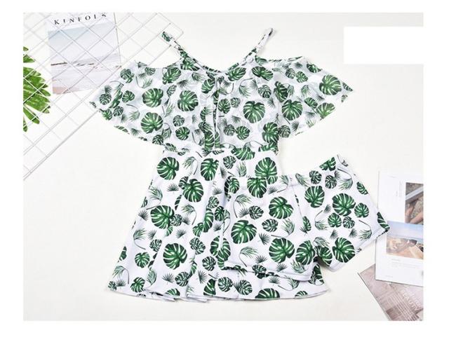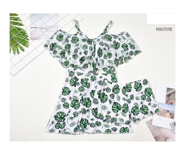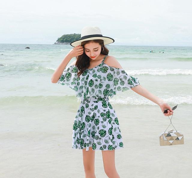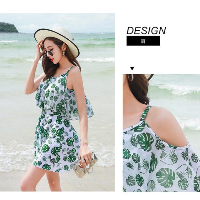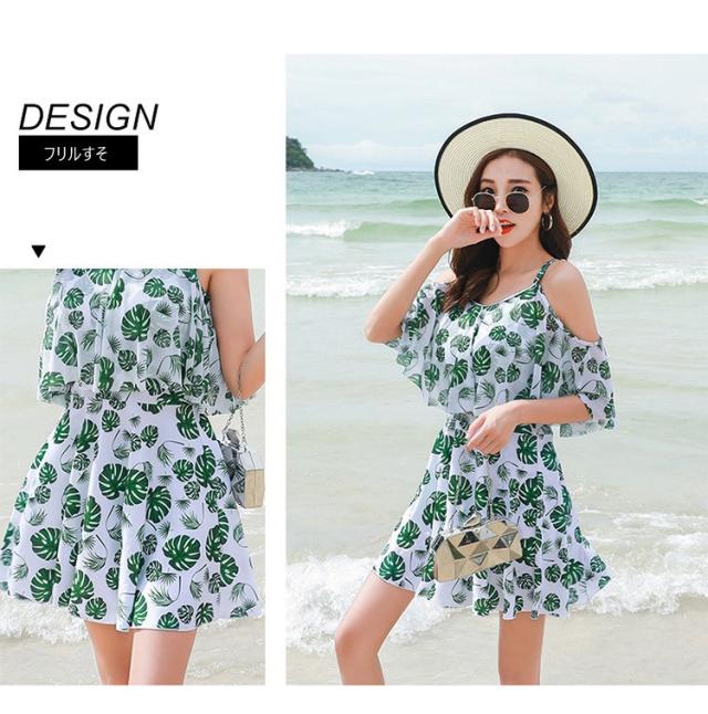 水着レディース 体型カバー 水着 ワンピース型 サロペット 肩出し 小胸バンドゥ 水着 葉柄 フリル 韓国風 40代 大きいサイズ 可愛いスイムウェア 温泉 ママ
