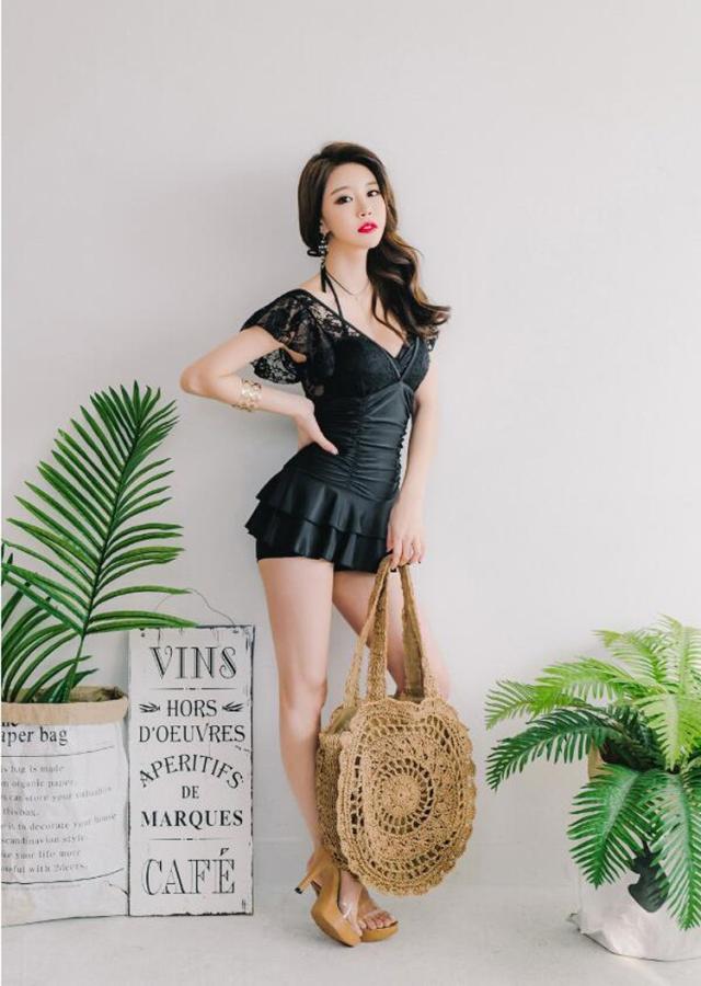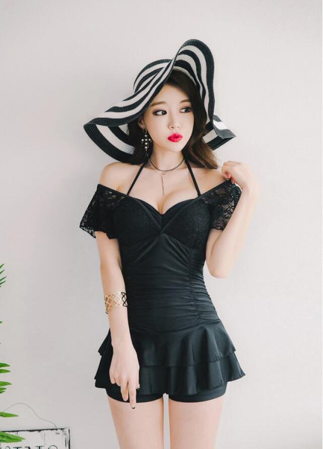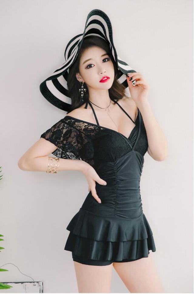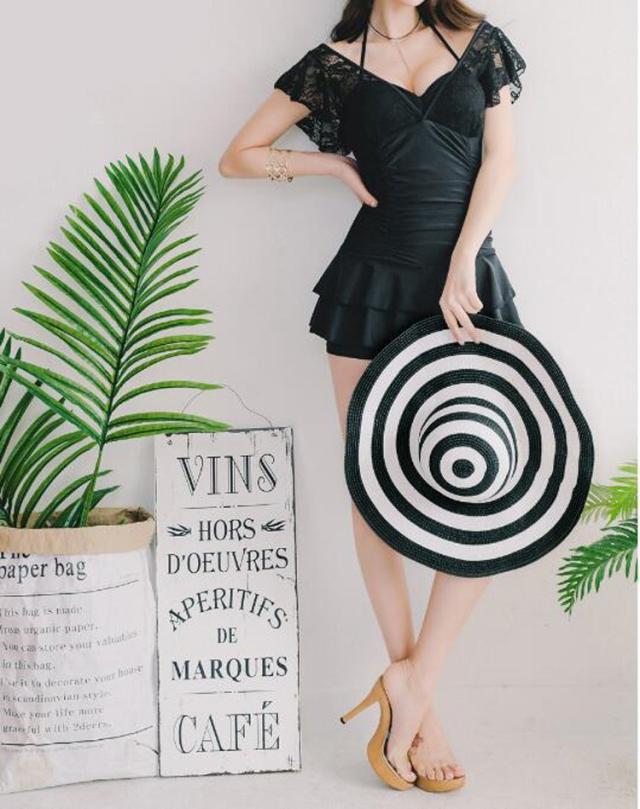 水着レディース 体型カバー 水着 ワンピース型 サロペット水着 レース vネック 小胸バンドゥ 水着 韓国風 40代 大きいサイズ 可愛い スイムウェア 温泉 ママ水着