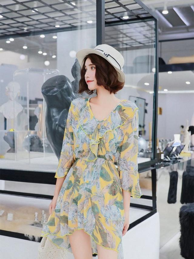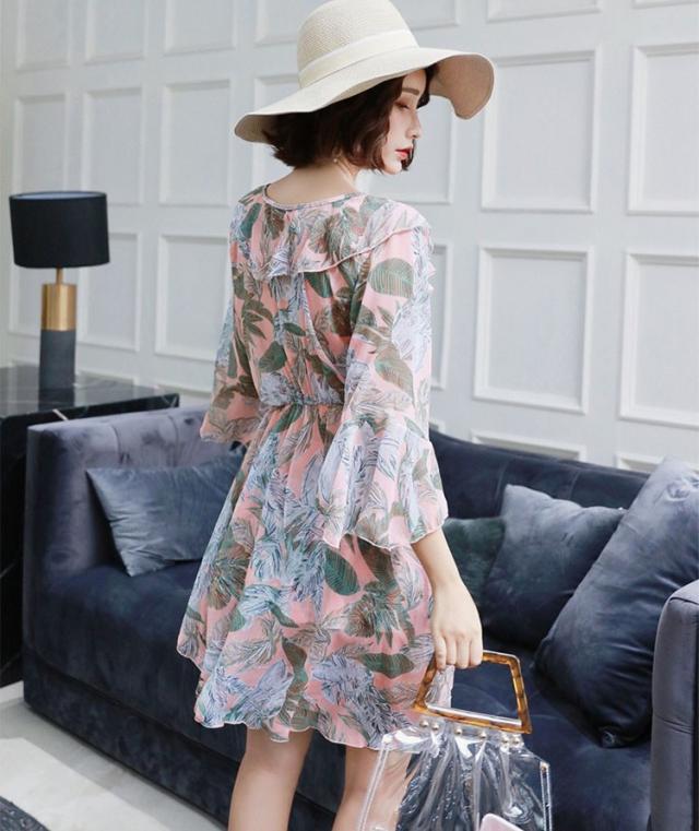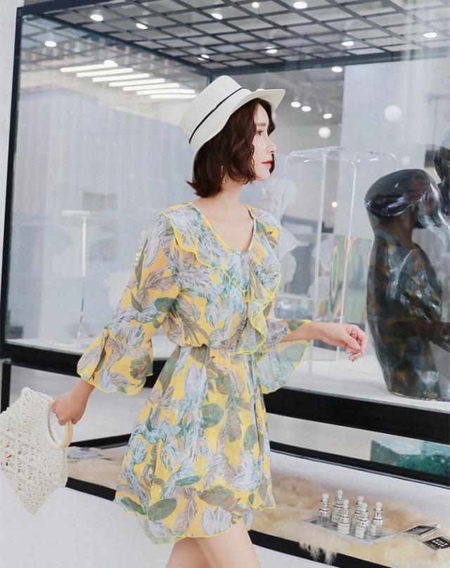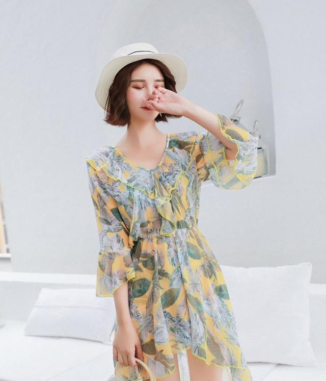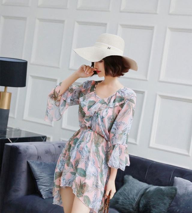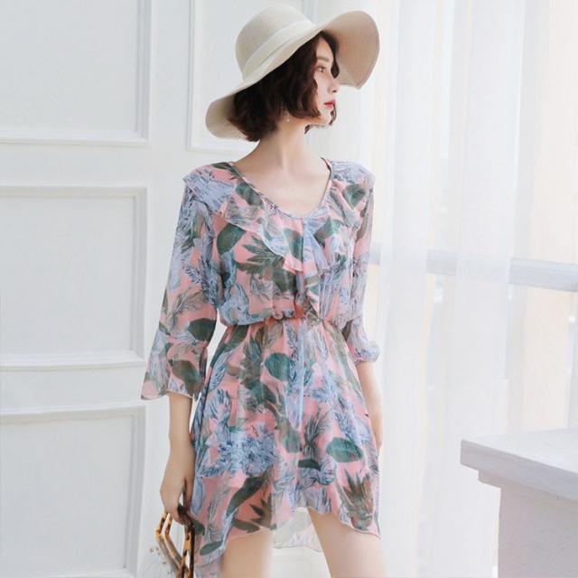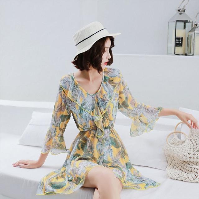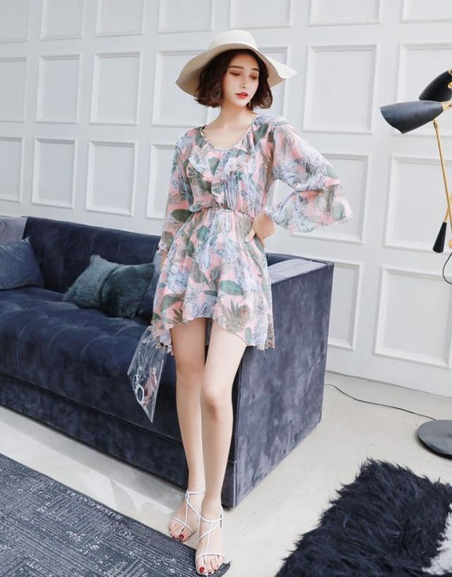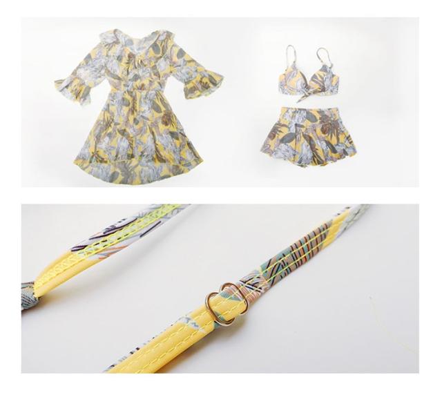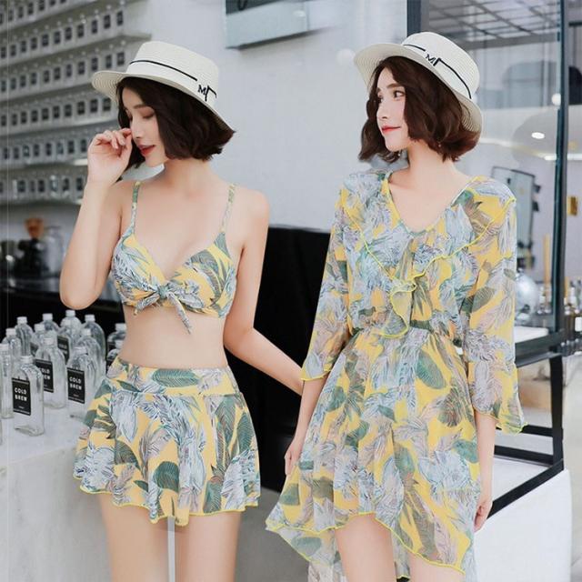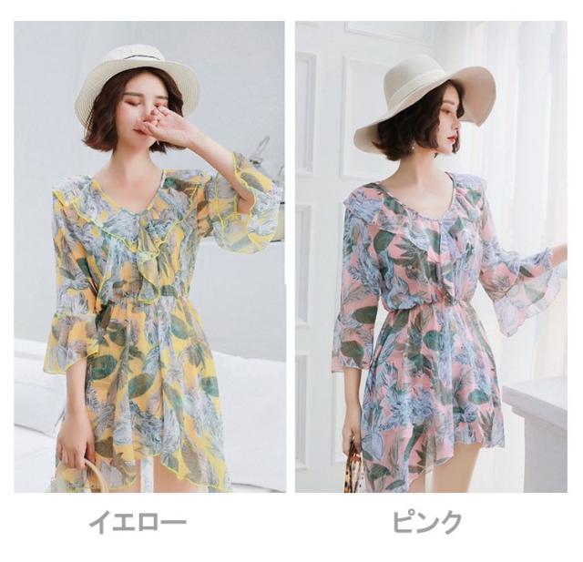 水着 レディース ワンピース 3点セット 上下セット レディースビキニ 韓国風 40代 可愛い きれいめ 花柄 フレア リボン 2色
