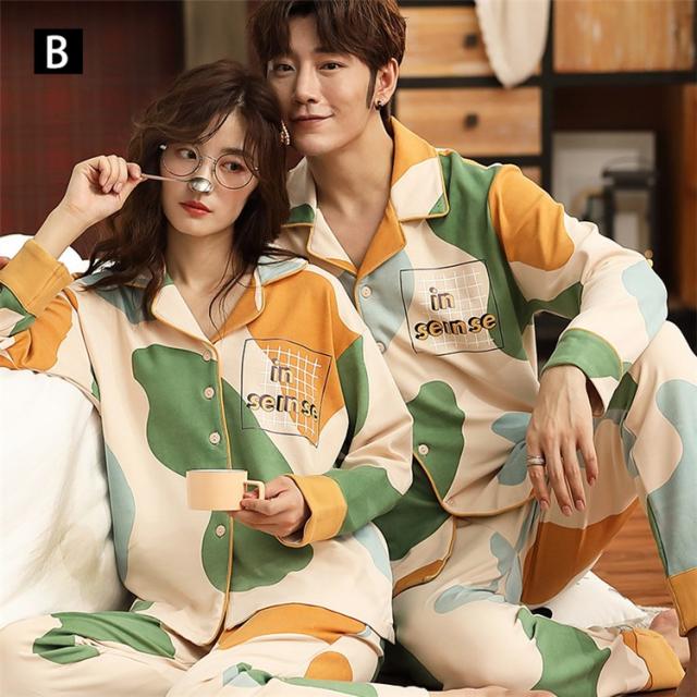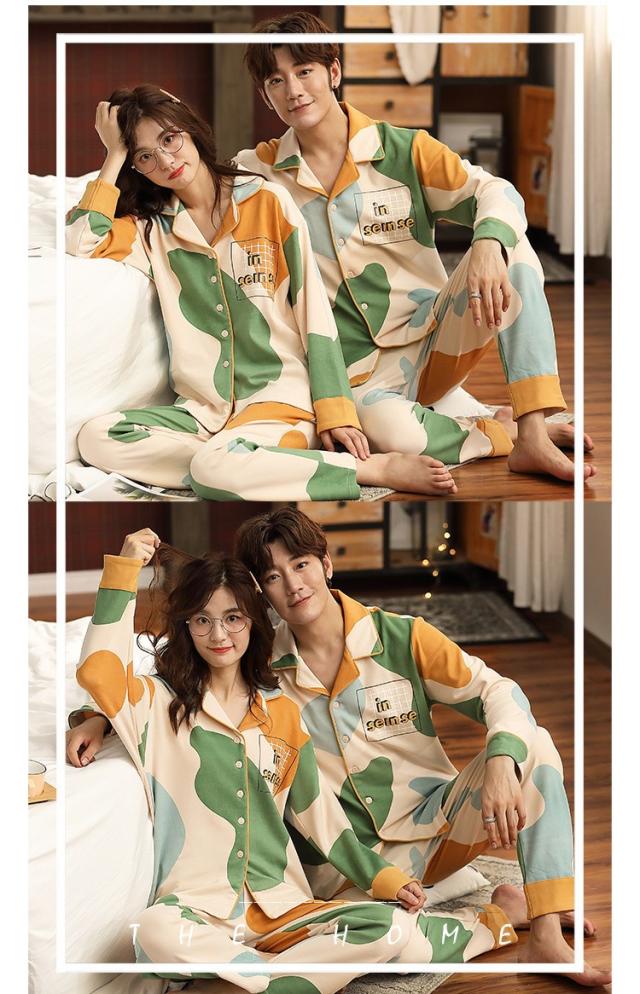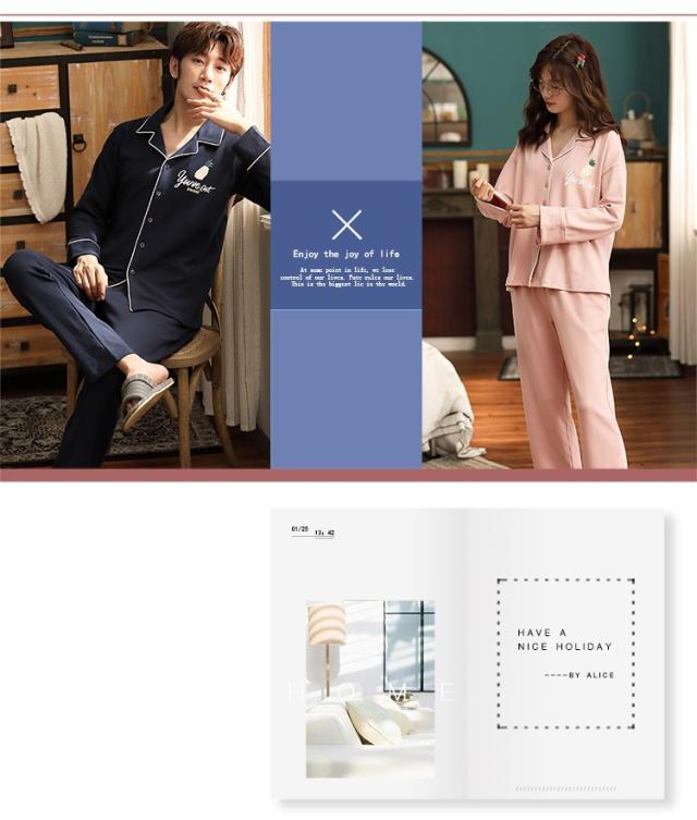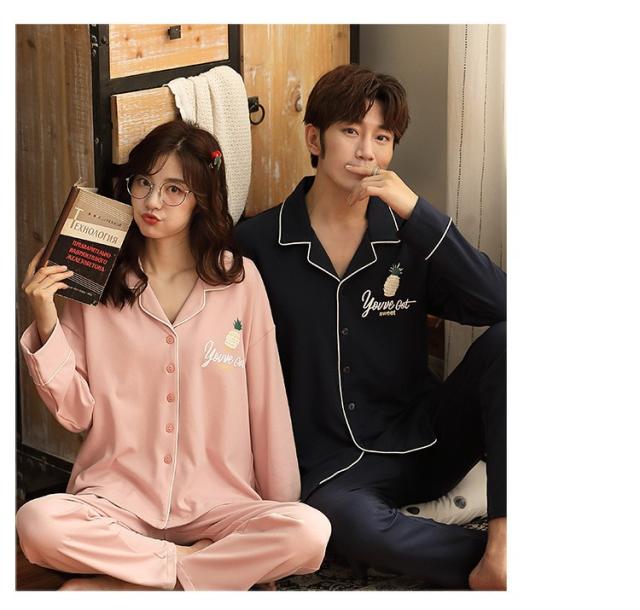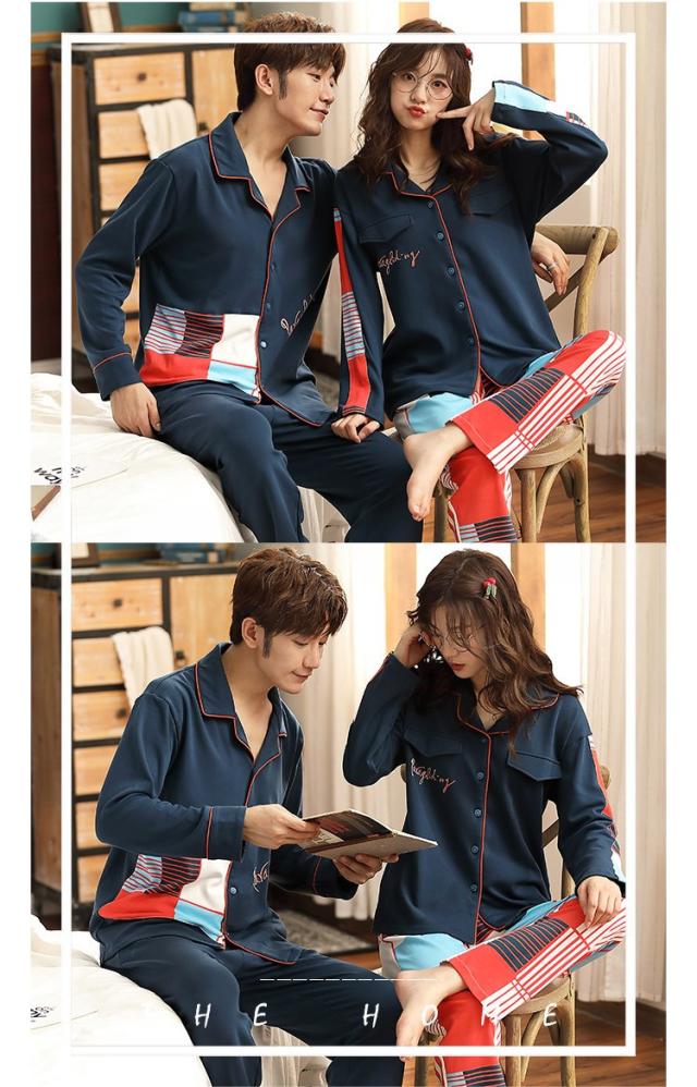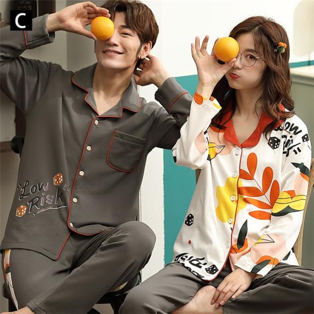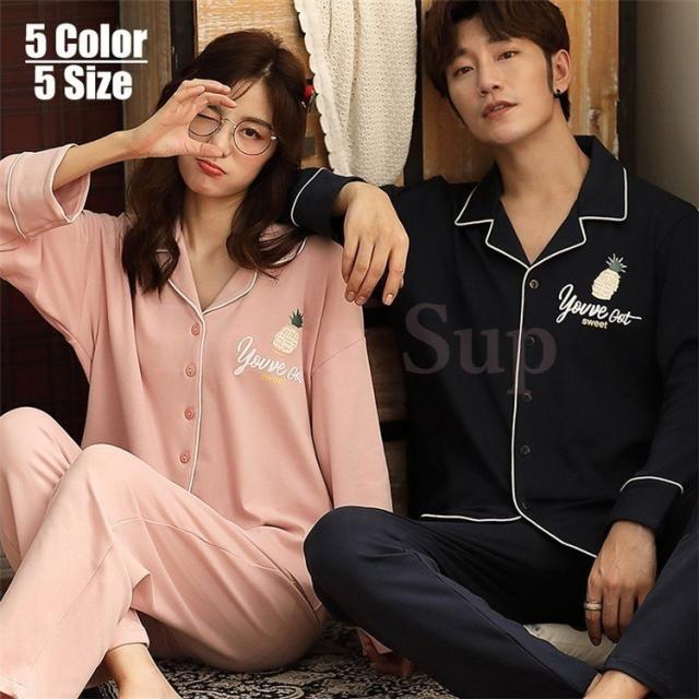パジャマ カップルペアルック ルームウェア 純綿 秋冬ペアパジャマ長袖 カーディガン パジャマペアルックお揃いレディースメンズ ネグリジェ レディース