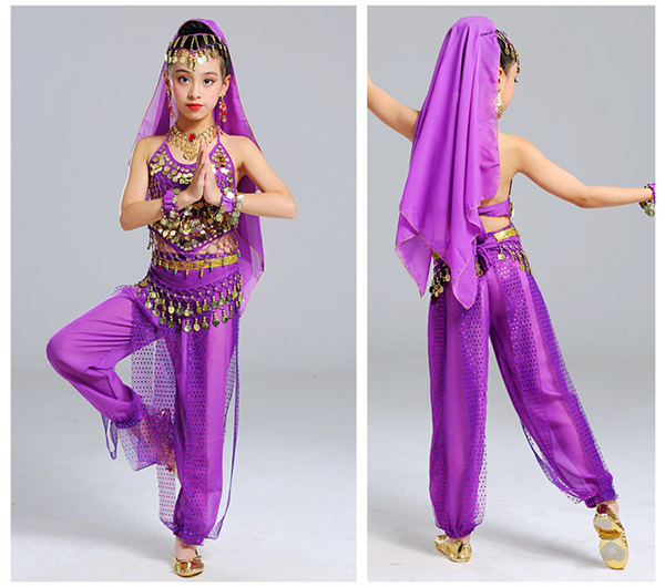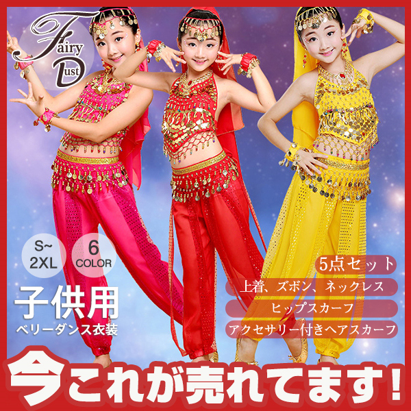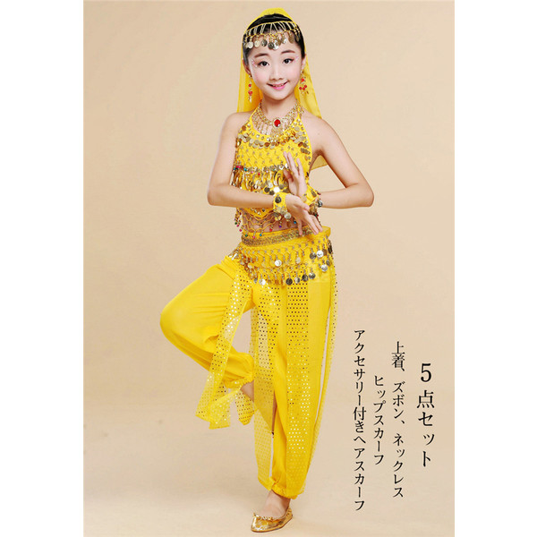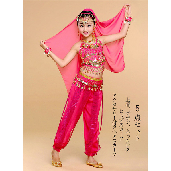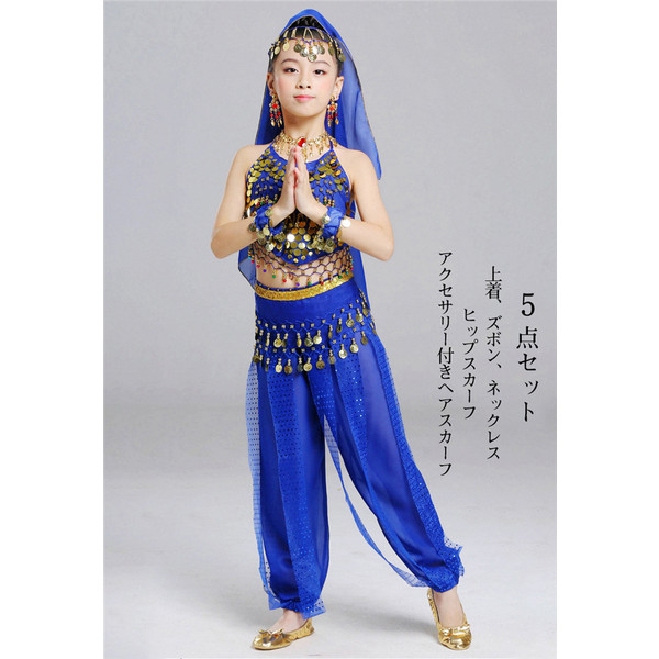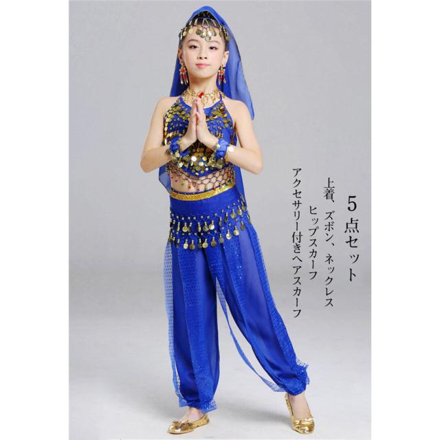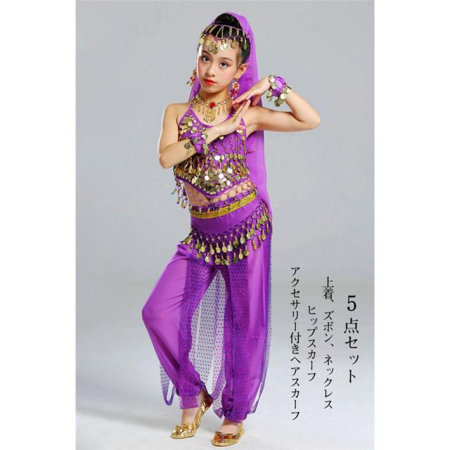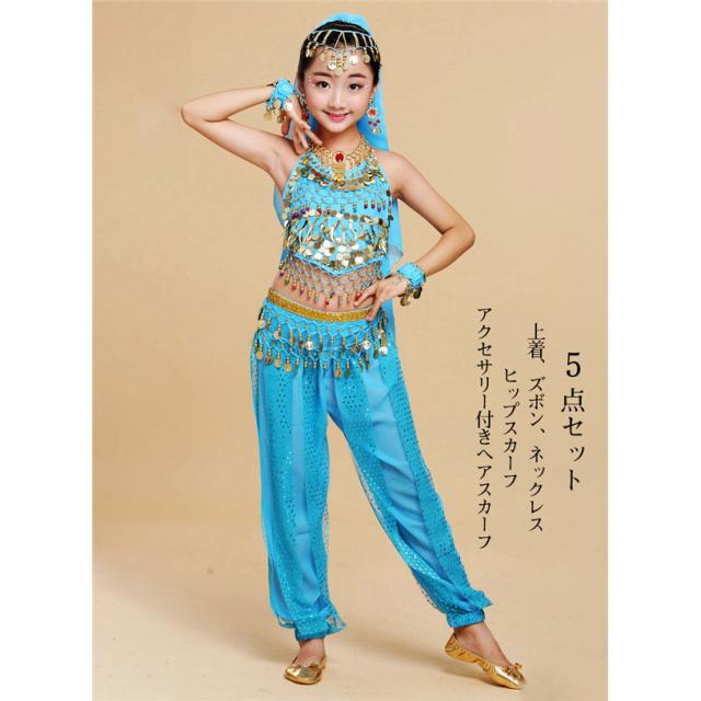 ベリーダンス衣装 ハロウィン 子供用 女の子 コスプレ仮装 アラジンベリーダンスセット 社交ダンス衣装 5点 社団演出服 華麗版 民族衣装 ジャスミン風