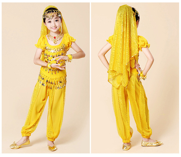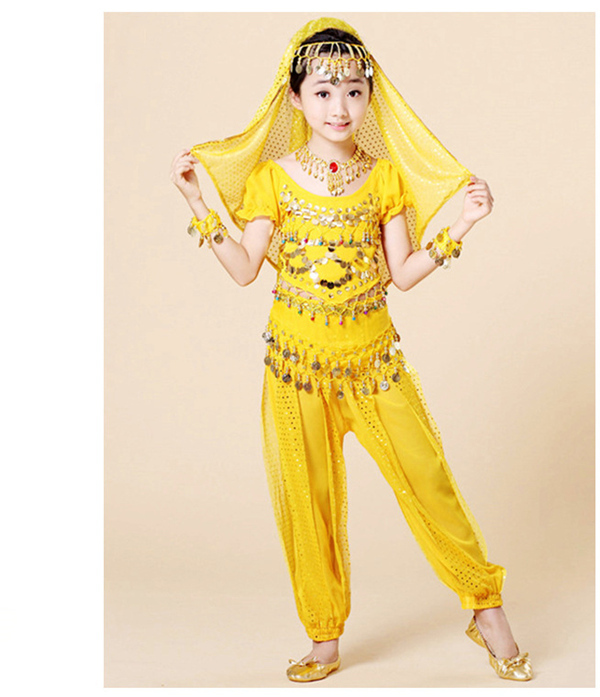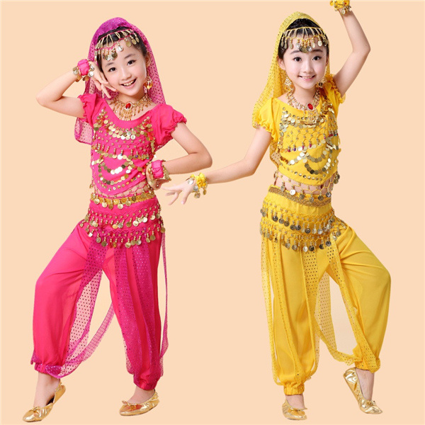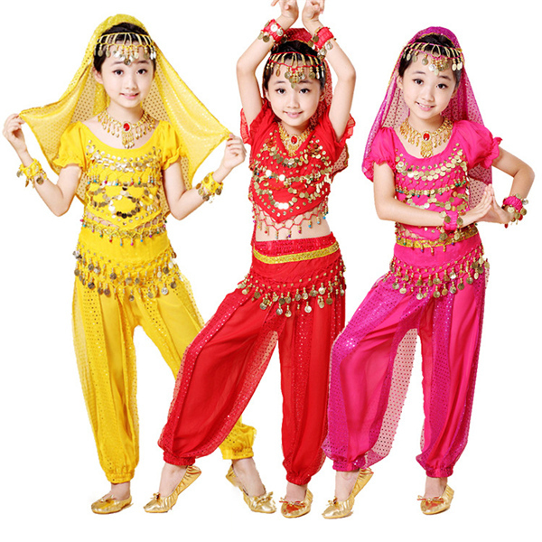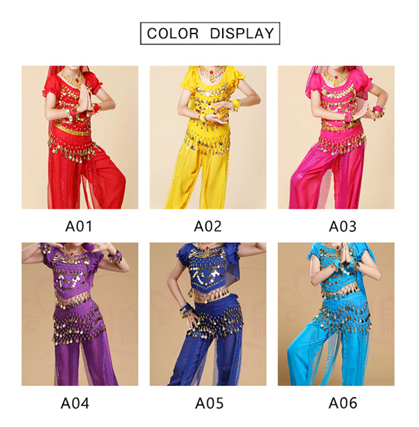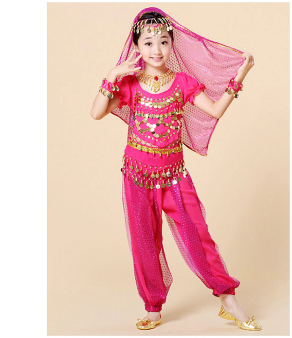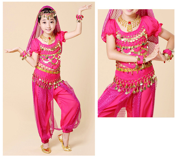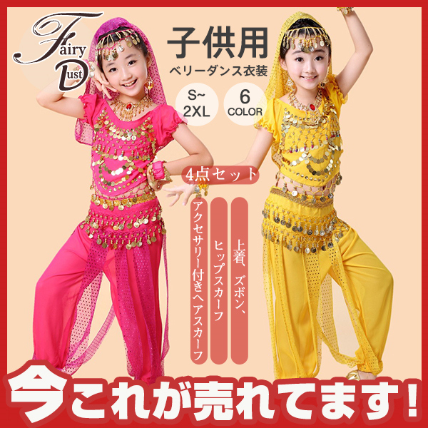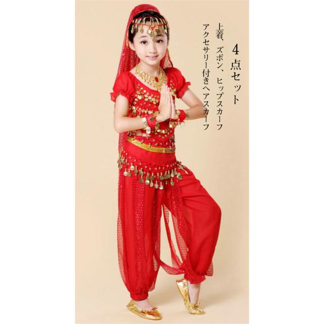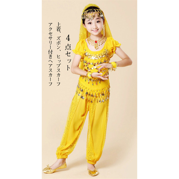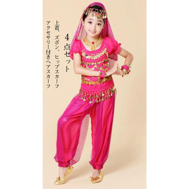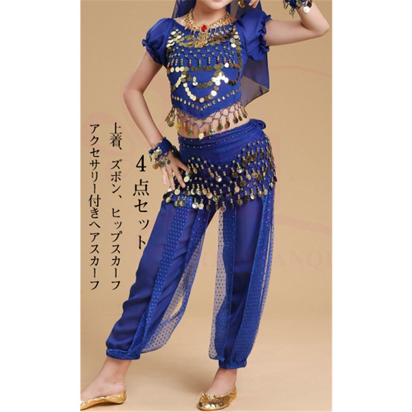 ベリーダンス衣装 ハロウィン 子供用 女の子 コスプレ仮装 アラジンベリーダンス 半袖 社交ダンス衣装 4点 社団演出服 華麗版 民族衣装 ジャスミン風