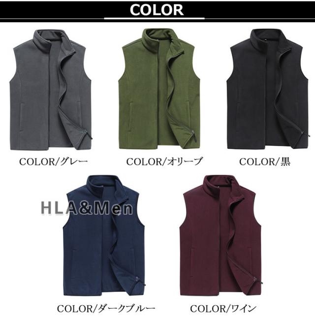 フリースベスト メンズ ベスト 無地 あったか 40代 50代 防寒 大きいサイズ アウトドア スタンドカラー