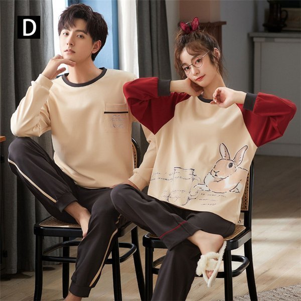セットアップ カップルペアルック 綿 ルームウェア 春夏秋冬ペアパジャマ 長袖 パジャマペアルックお揃いレディースメンズ ネグリジェ 大きいサイズ単品売り