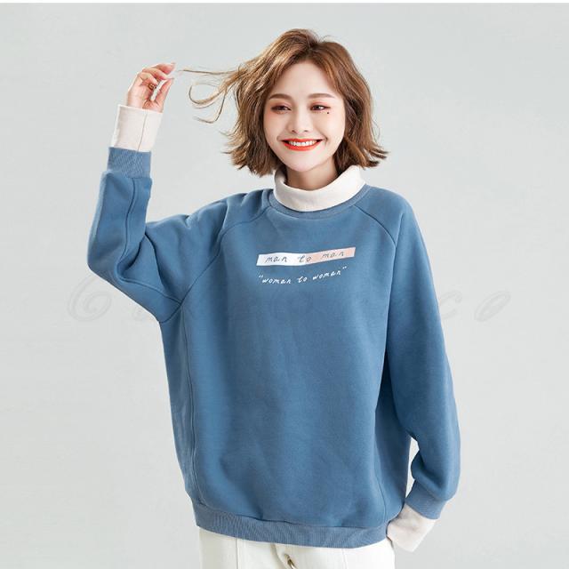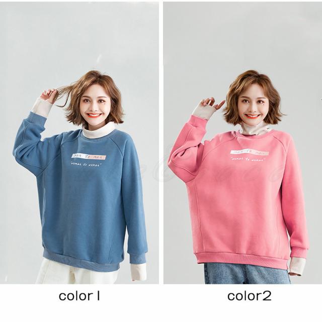 21年秋冬新作 トレーナー レディース タートルネック 重ね着風 トップス カジュアル 厚手 裏起毛 あったか 可愛い きれいめ おしゃれ 送料無料